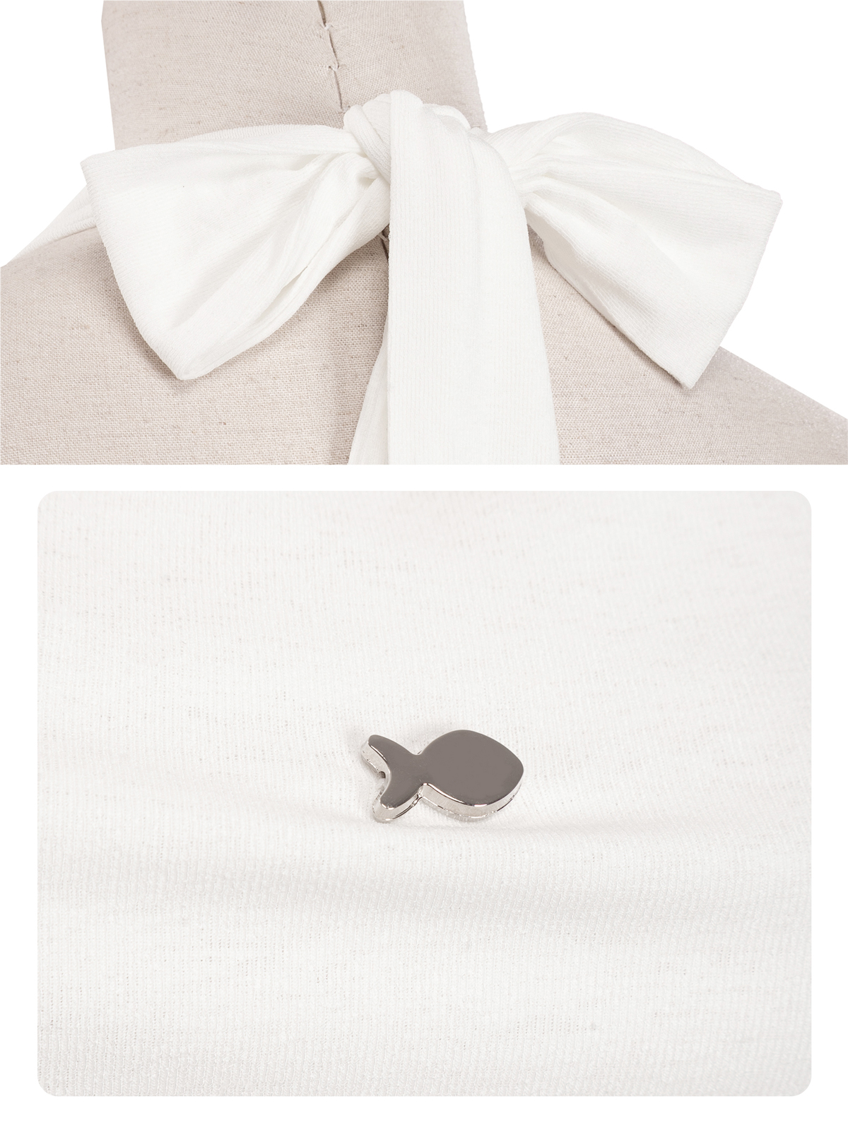 Phía sau áo là thiết kế hở lưng nhưng vẫn giữ được nét e ấp, giúp bé khoe khéo tấm lưng trần một cách tinh tế nhất. Không thể thiếu chiếc logo cá inox nhỏ xinh được đính kết tỉ mỉ, làm tăng thêm sự đáng yêu và dấu ấn riêng biệt của nhà DKMV.