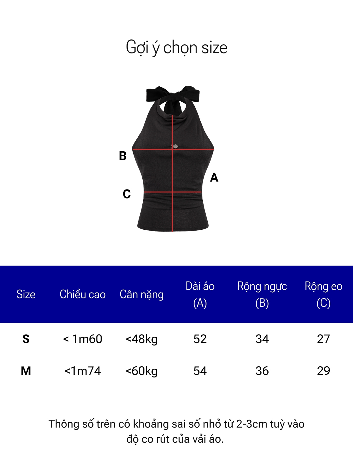 | Size | Rộng ngực | Rộng eo | Dài áo |