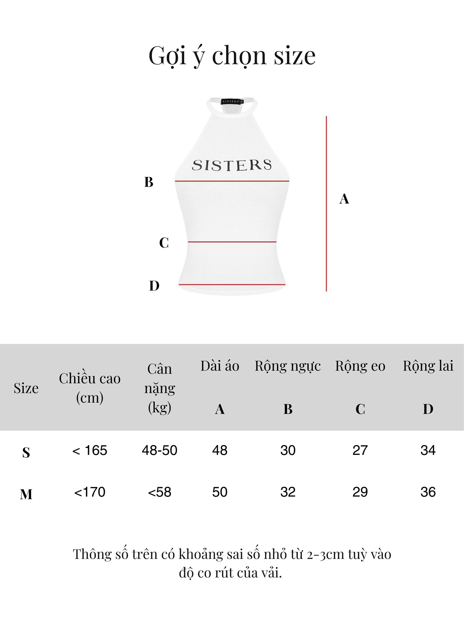 | Size | Ngang ngực | Ngang eo | Ngang lai | Dài áo |