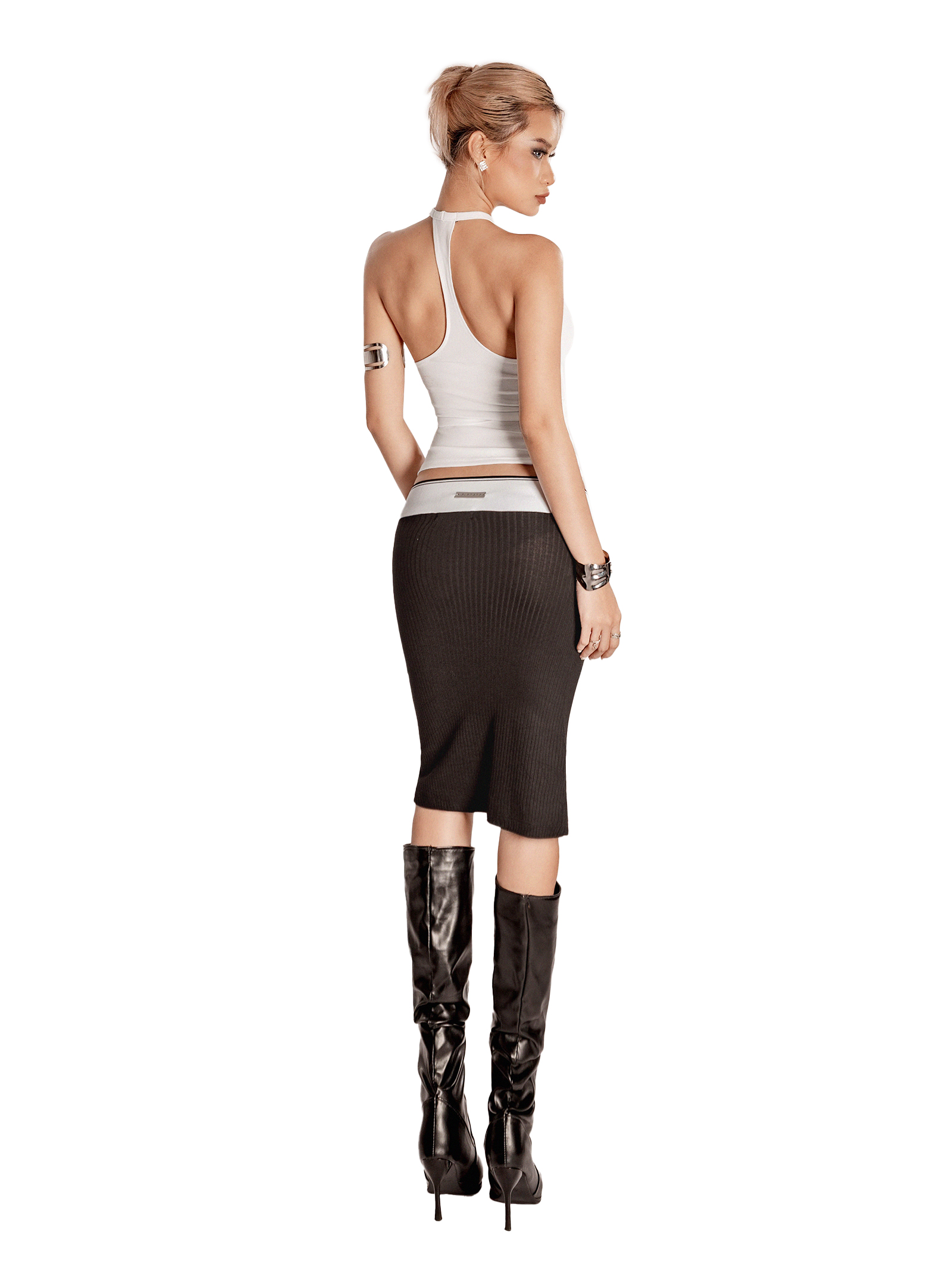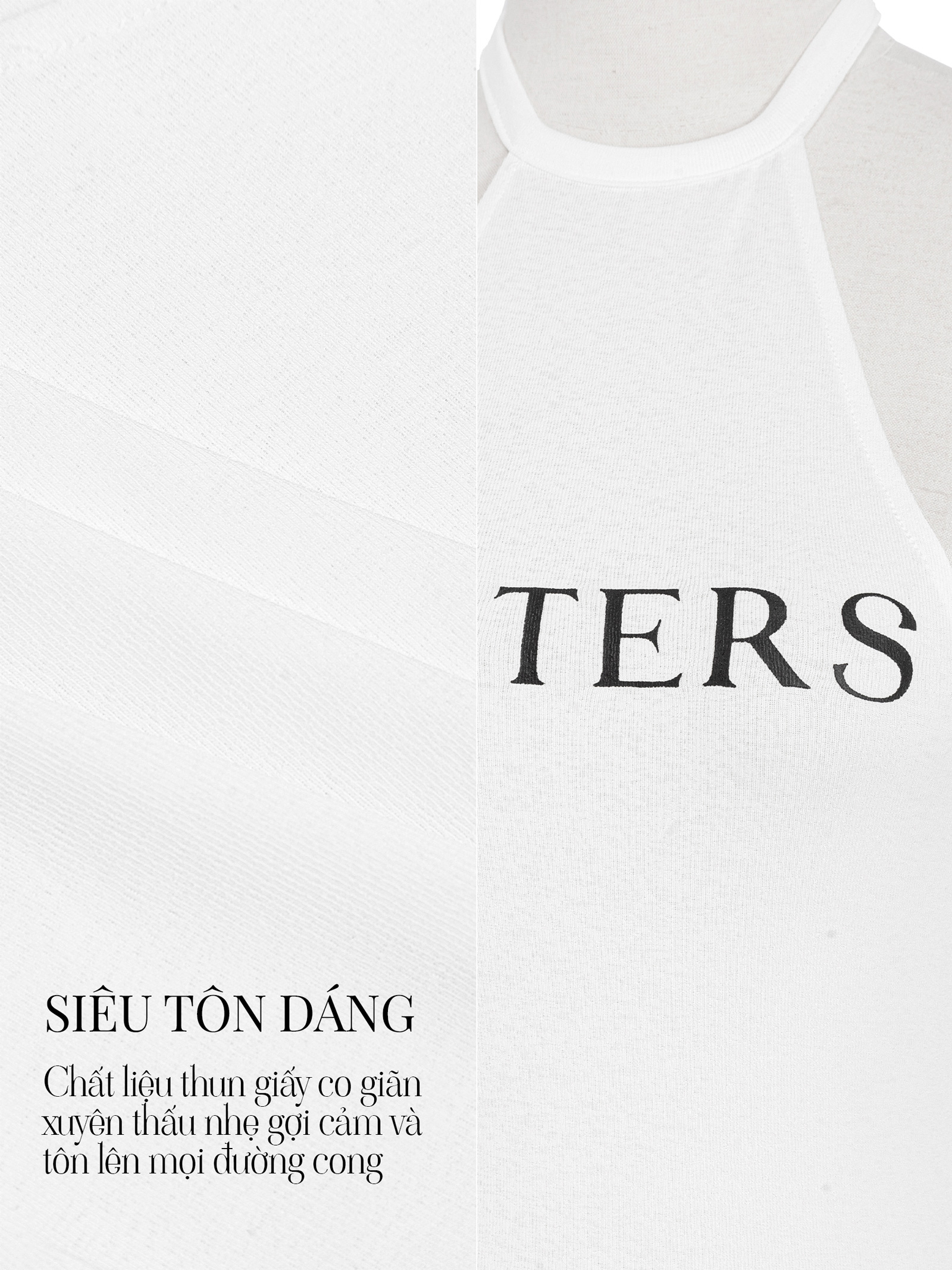 Thiết kế cổ yếm hiện đại, giúp khoe trọn bờ vai thon và xương quai xanh quyến rũ. Dáng áo dài tạo phong cách sang chảnh, sexy.