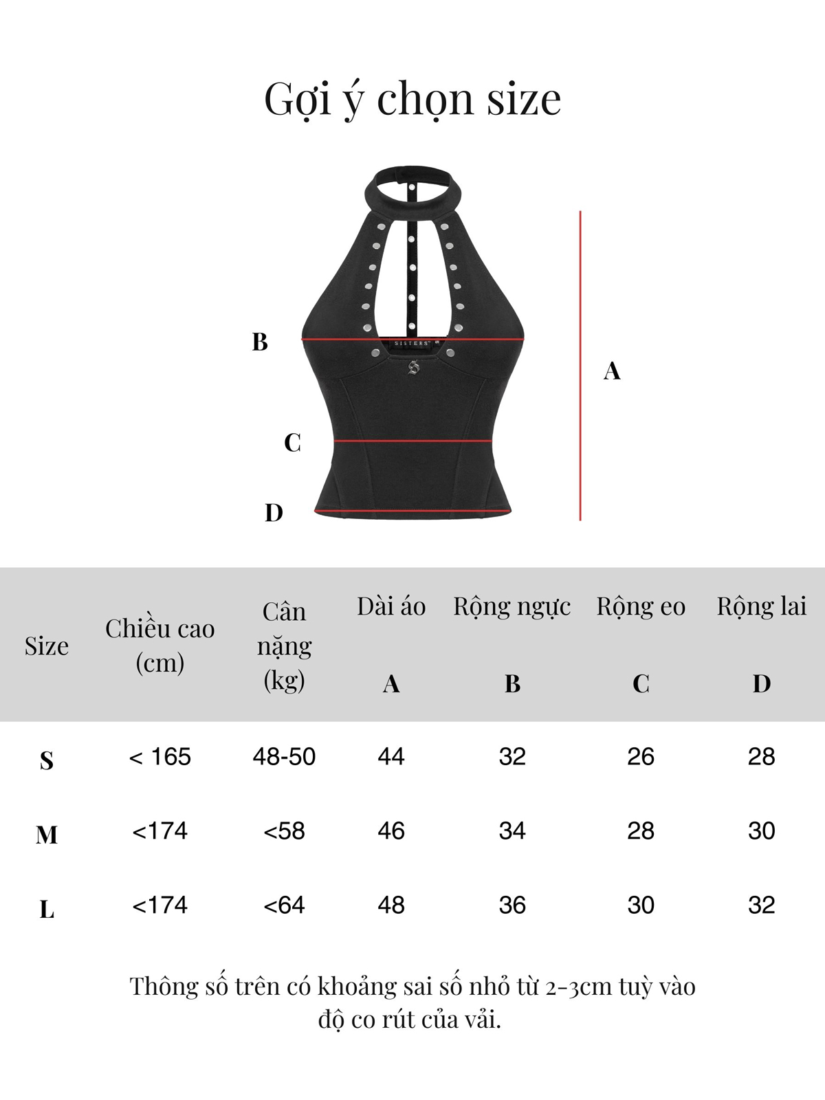| Size | Ngang ngực | Ngang eo | Ngang lai | Dài áo |