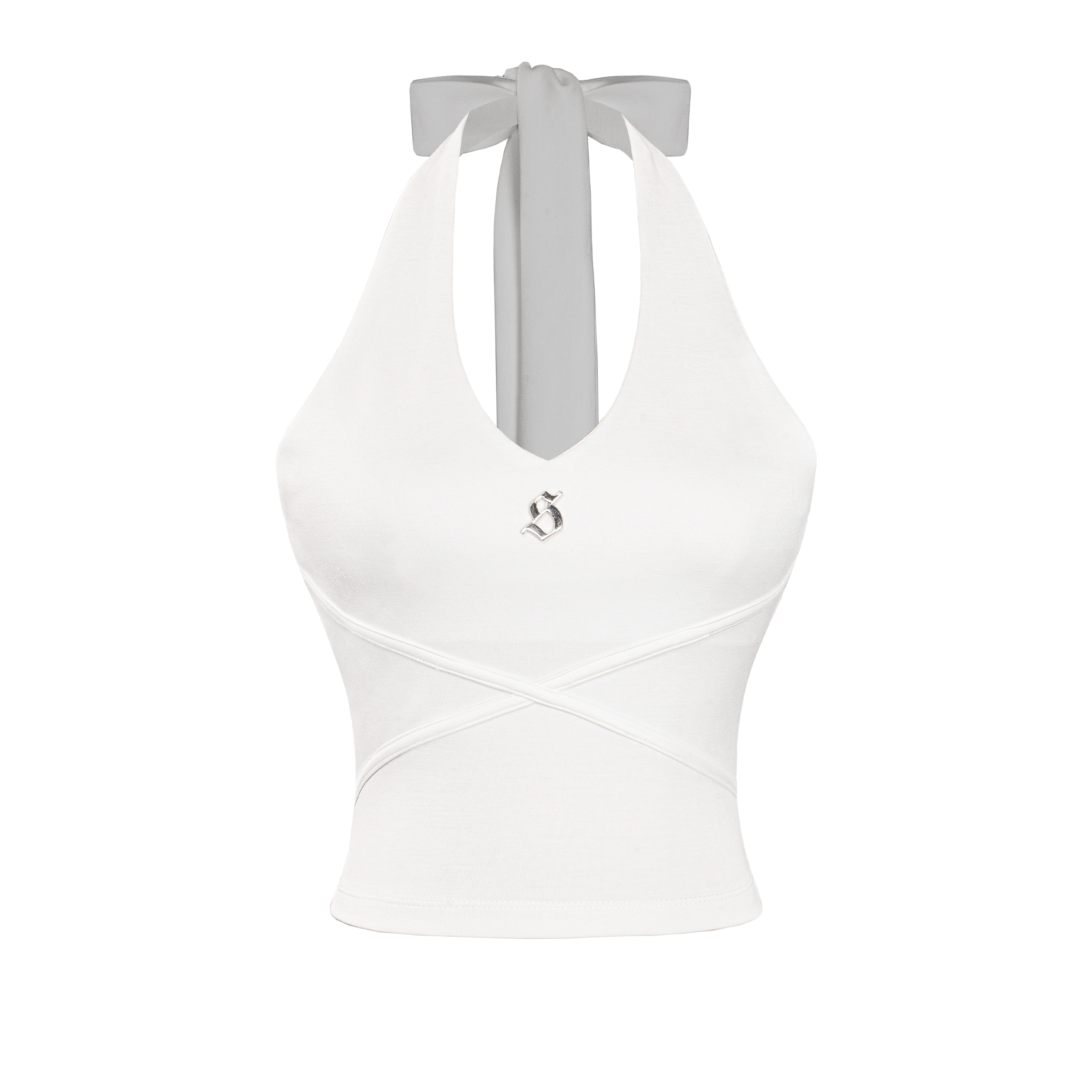 Áo croptop cổ yếm Jenner với thiết kế cổ yếm tinh tế và chiếc nơ lớn bản phía sau đầy hút mắt sẽ giúp bạn trở thành tâm điểm của mọi ánh nhìn.