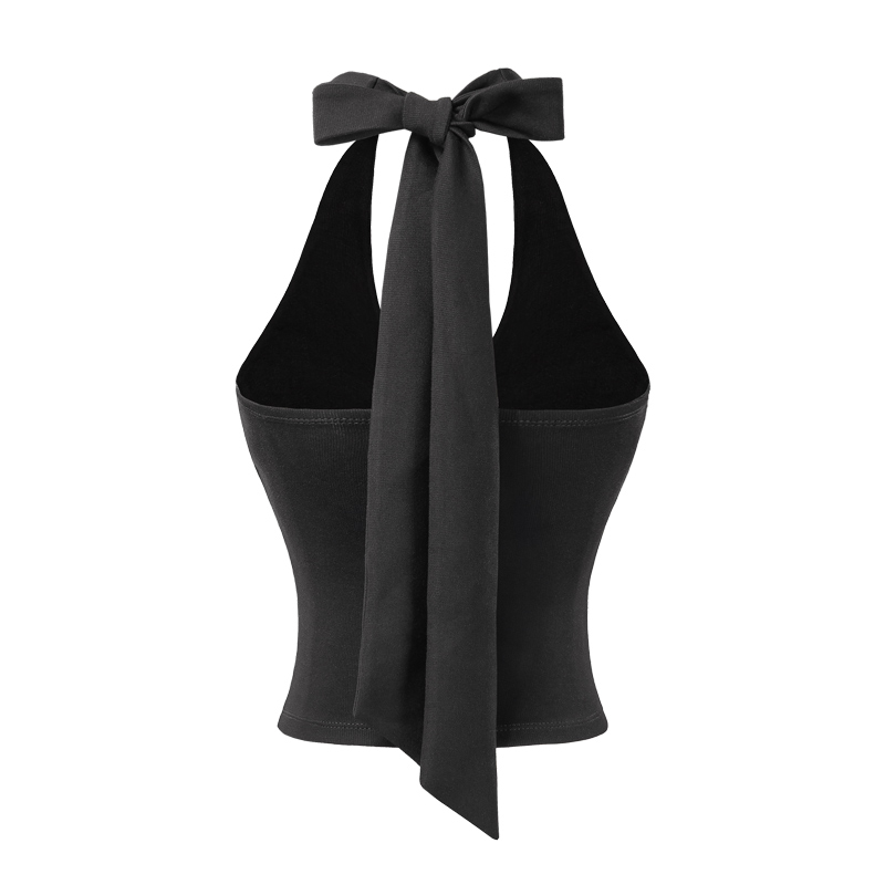 SISTERS Áo croptop cổ yếm cột nơ to Jenner
