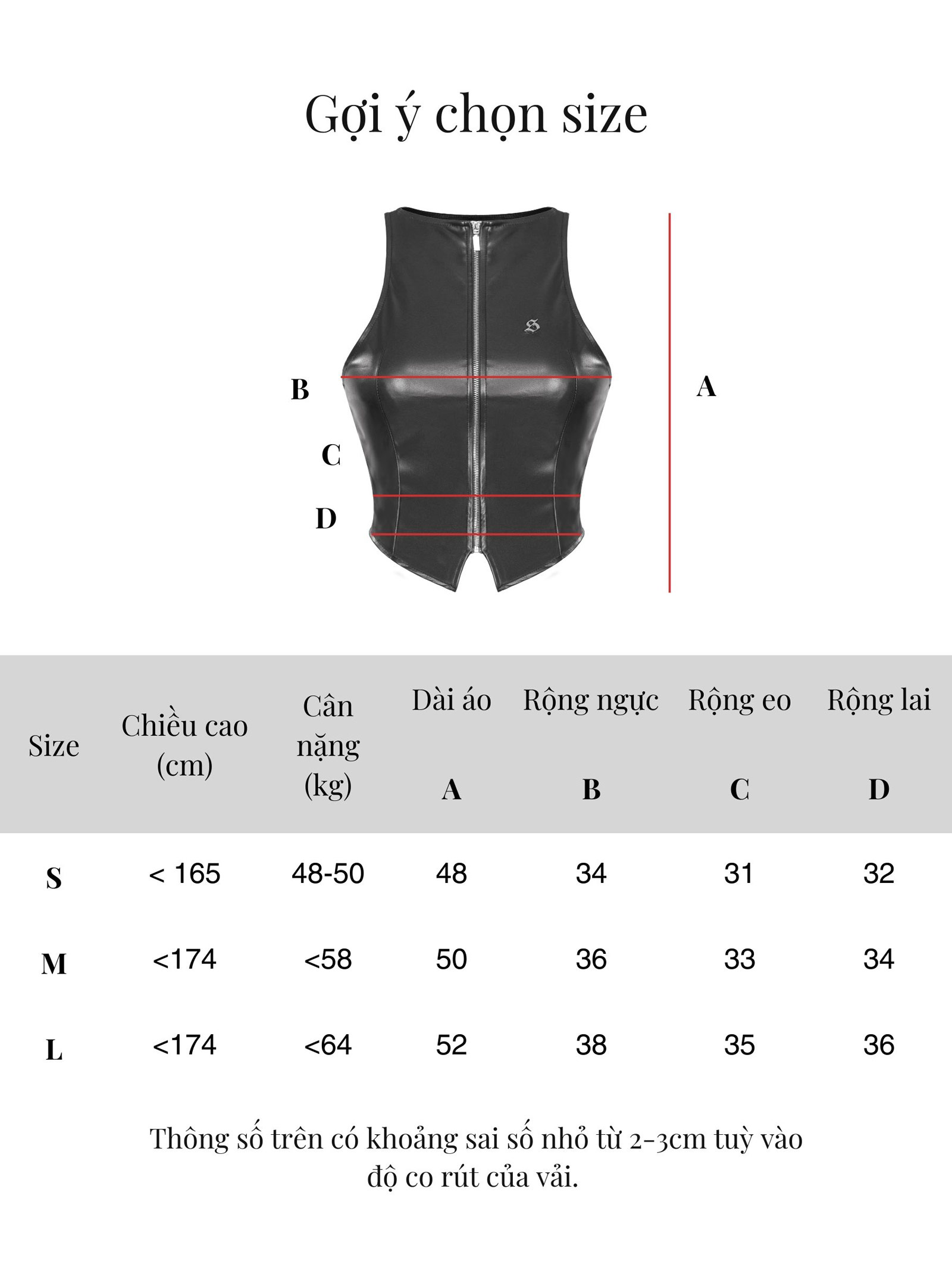 | Size | Ngang ngực | Ngang eo | Ngang lai | Dài áo |