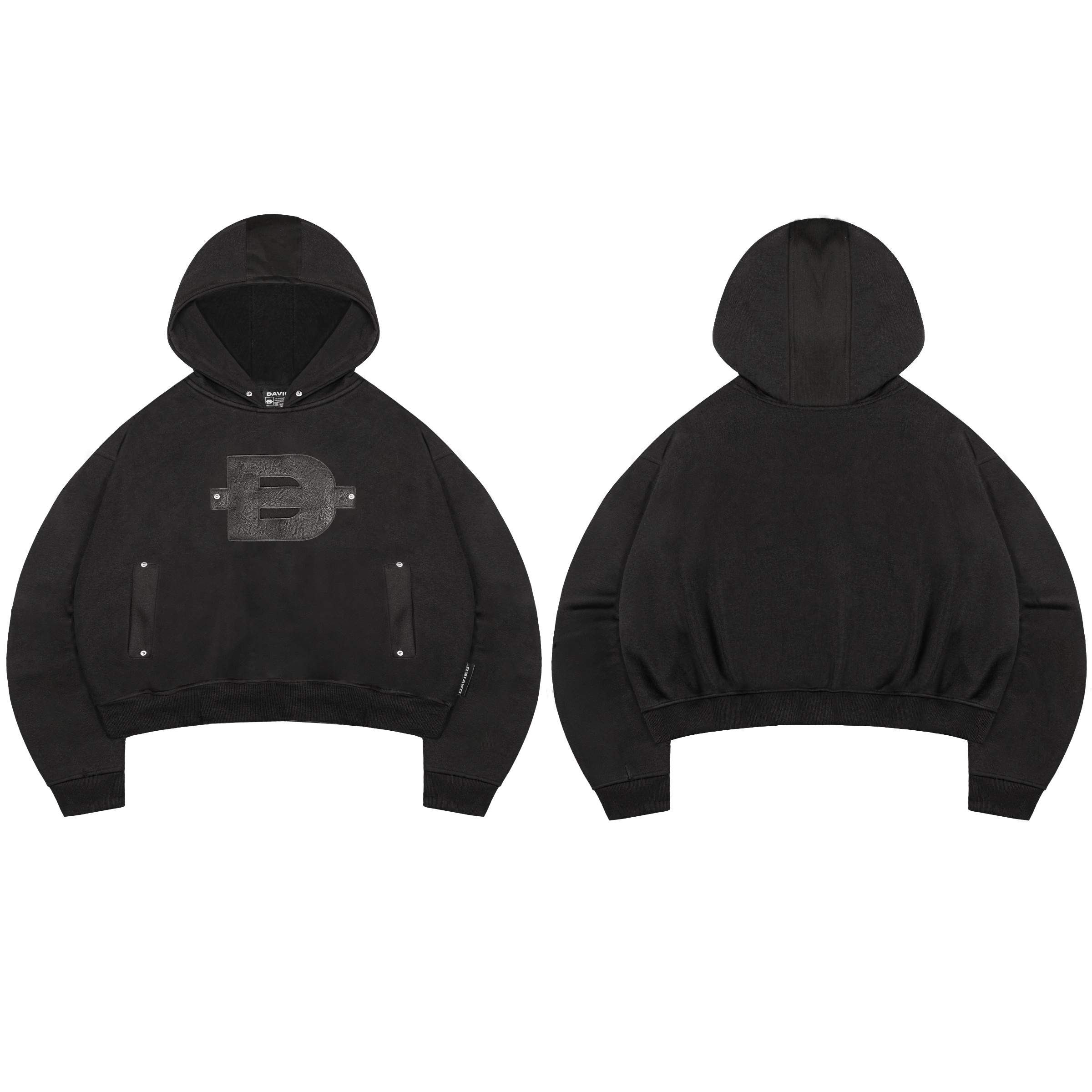 Tâm điểm của chiếc hoodie nằm ở chi tiết hình thêu da nổi. Thay vì in phẳng hay thêu chỉ thông thường, DAVIES lựa chọn chất liệu da để tạo khối, mang lại cảm giác cứng cáp và khác biệt ngay khi chạm tay.