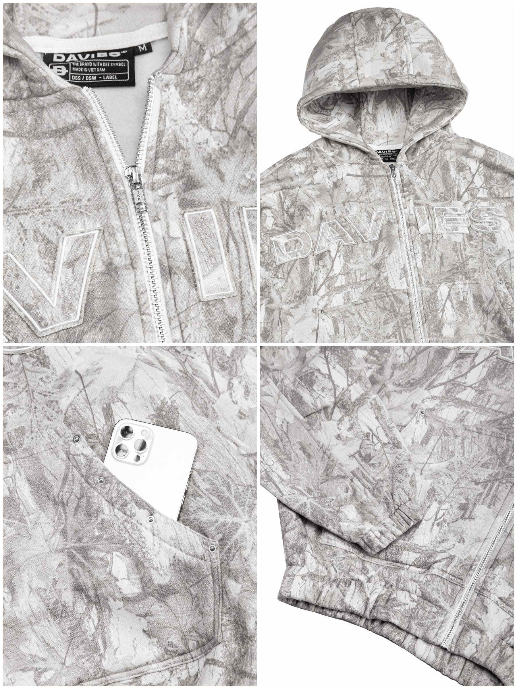 Giữa nhịp sống thành thị xô bồ, streetwear không còn chỉ là quần áo để mặc ra ngoài, mà là cách người trẻ mang theo bản năng, cá tính và nhịp sống của mình lên từng chuyển động. Commando Hoodie Zip của DAVIES ra đời từ tinh thần đó: một chiếc áo hoodie zip nỉ bông mang họa tiết lá rừng, đậm chất hiphop đường phố, sẵn sàng đồng hành cùng bạn từ phố xá đến những cuộc chơi không giới hạn.