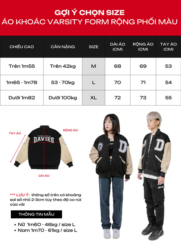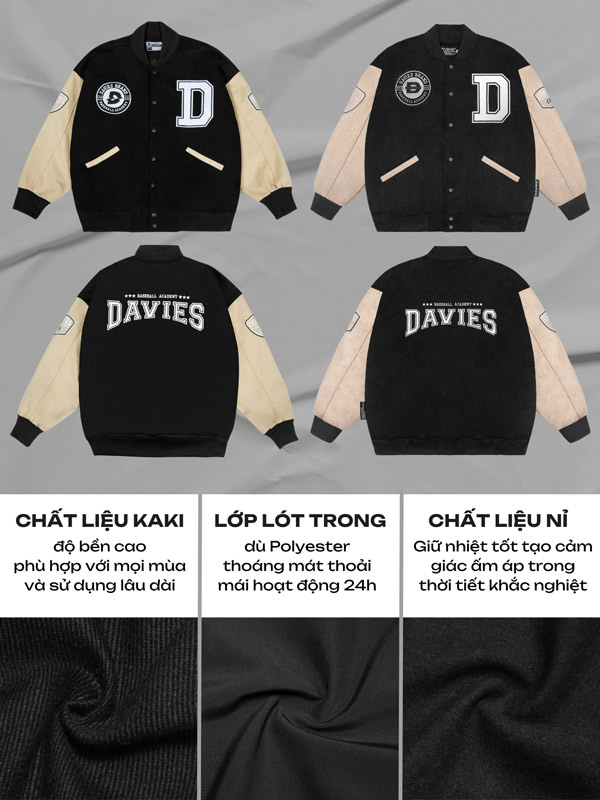 - Áo khoác bóng chày DAVIES là hàng chính hãng, sản phẩm đúng với mô tả 100%