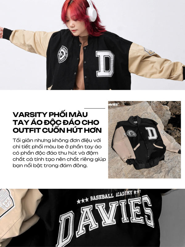 Davies là thương hiệu thời trang đường phố (streetwear), Davies luôn mang đến những thiết kế táo bạo và dẫn đầu. Nắm bắt nhu cầu và xu hướng mới nhất của giới trẻ, Davies hân hạnh giới thiệu Áo khoác bóng chày Varsity Baseball Academy - hứa hẹn mang đến trải nghiệm tuyệt vời cho các tín đồ thời trang