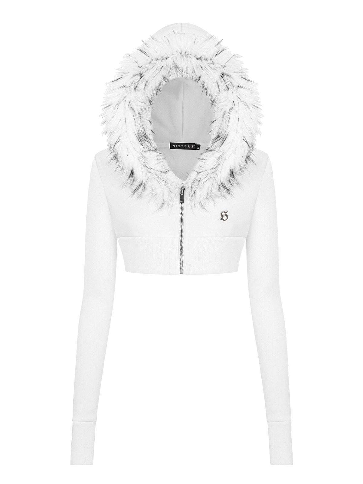 SISTERS Áo khoác croptop nỉ mũ lông Vesper - Trắng