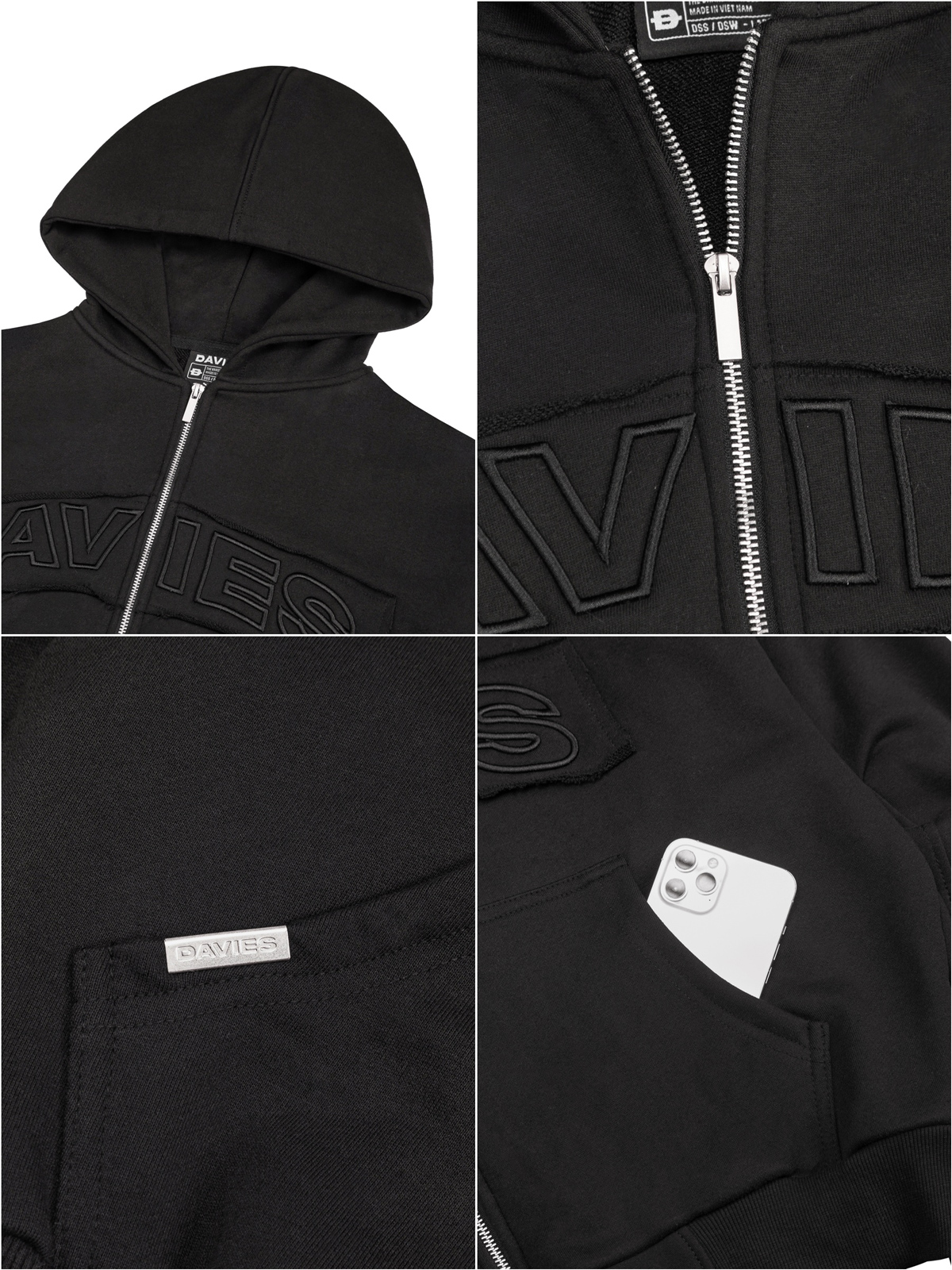 DAVIES tiếp tục đẩy giới hạn thiết kế với Patchwork Hoodie Zip, mẫu hoodie nỉ form boxy dành cho những ai yêu vibe phóng khoáng, mạnh mẽ và đậm chất hiphop. Từ chất liệu, chi tiết phối viền cho đến lettering thêu nổi 3D, chiếc áo khoác này không chỉ để mặc - nó là lời tuyên bố phong cách trên từng bước chân bạn lên phố.