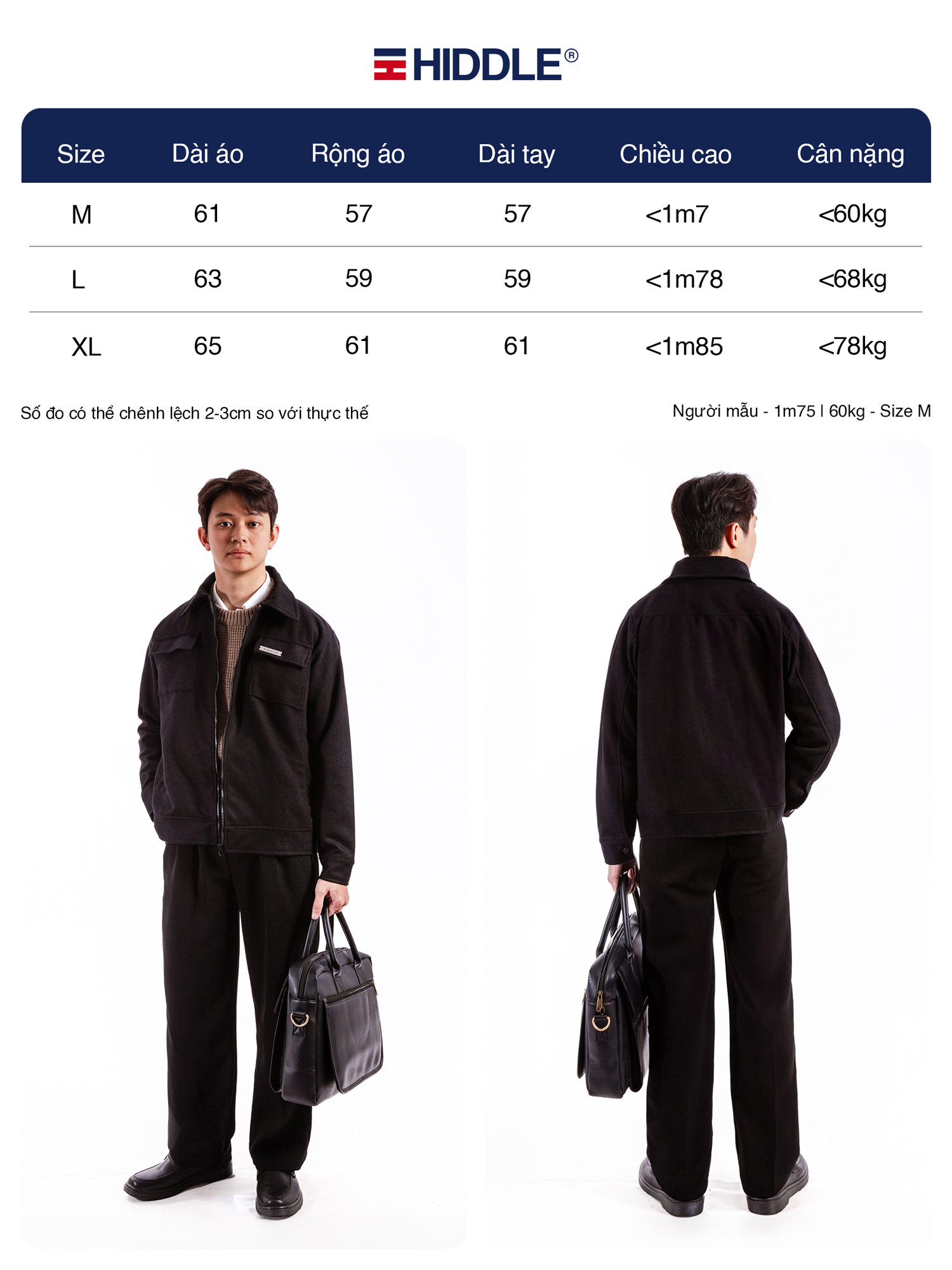- Áo khoác nam hàng hiệu cao cấp Hiddle là hàng chính hãng, sản phẩm đúng với mô tả 100%