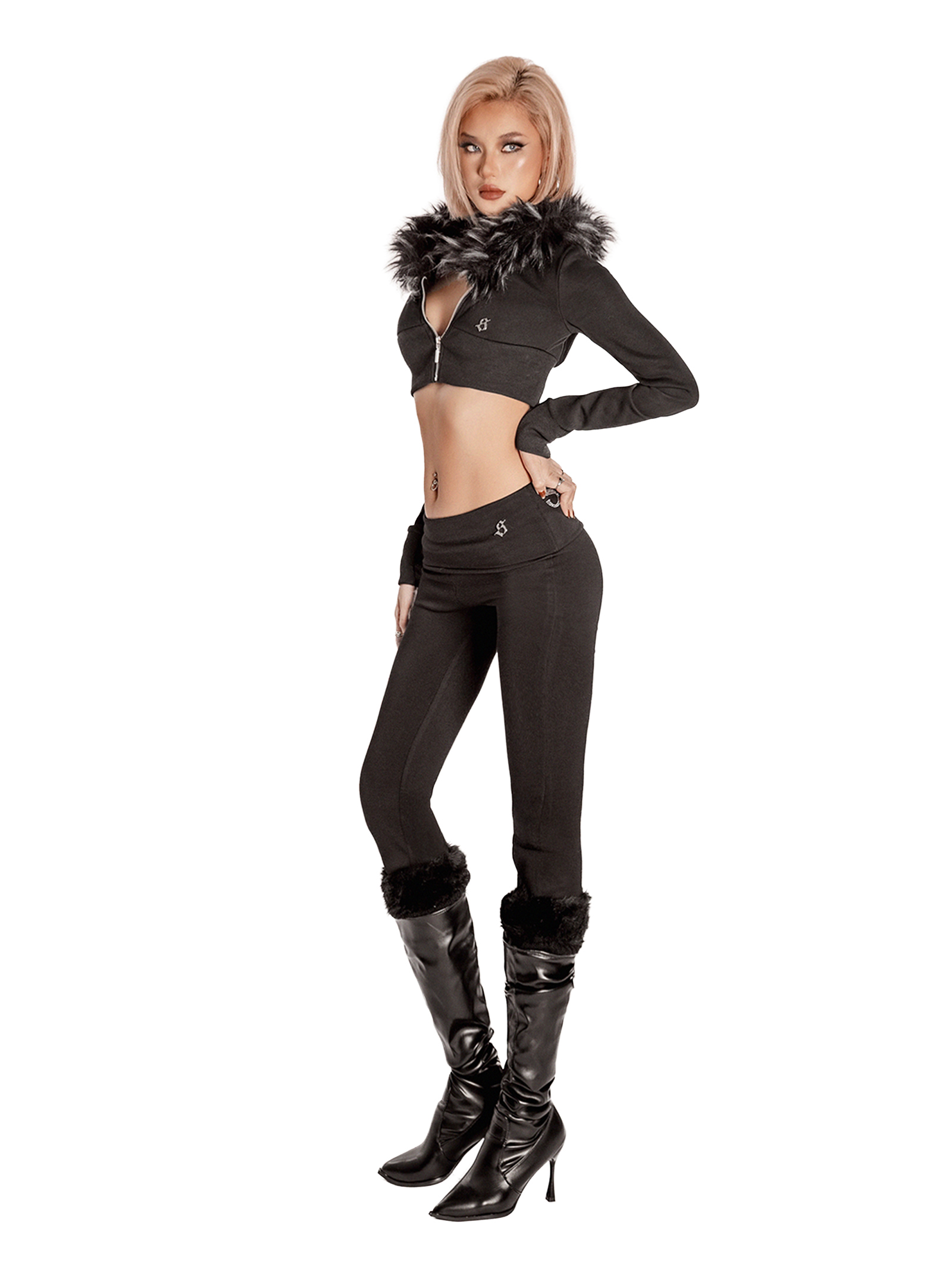 Áo khoác croptop nỉ mũ lông Vesper được sản xuất tại Việt Nam, tôn vinh vẻ đẹp của người phụ nữ.