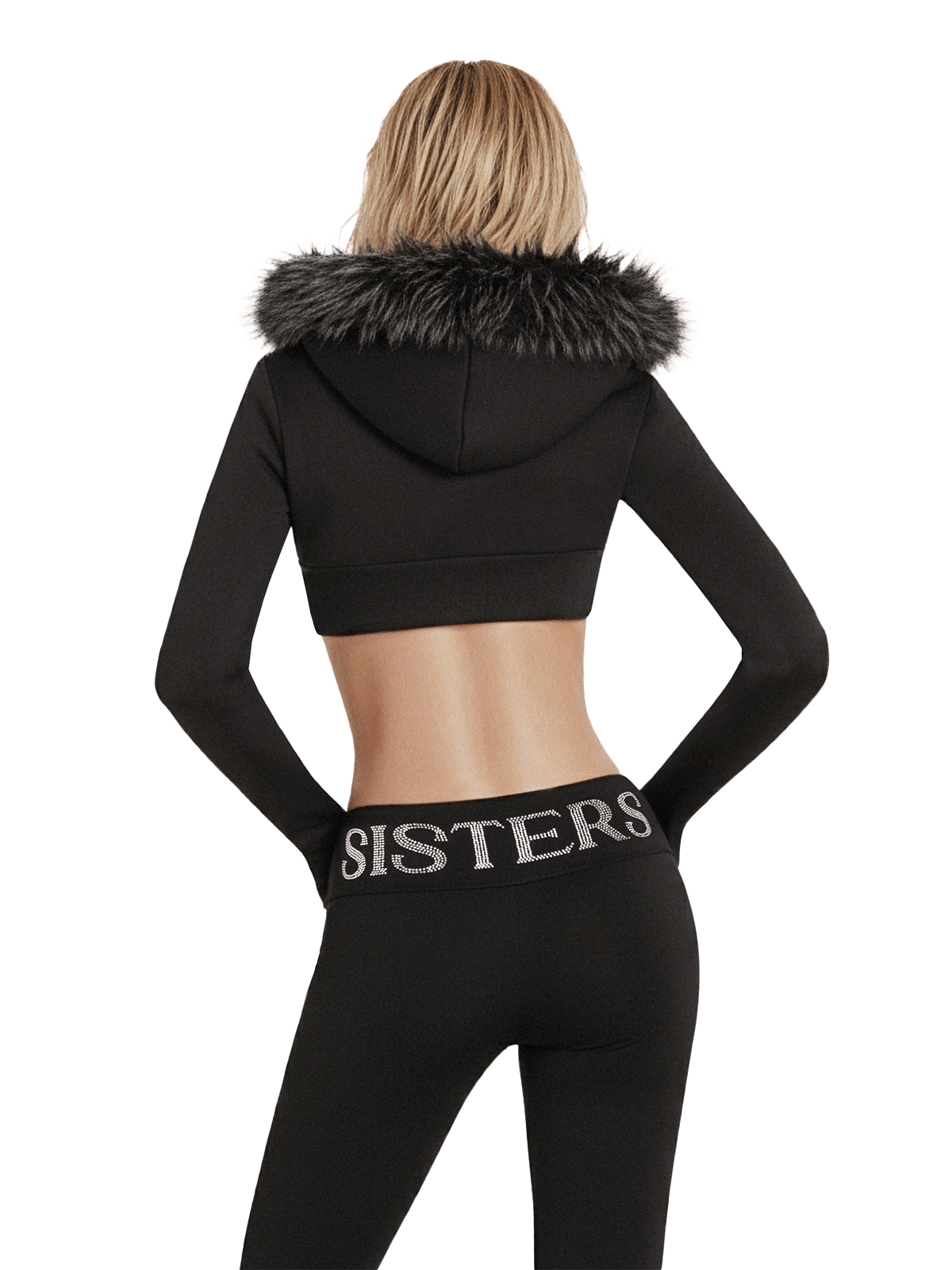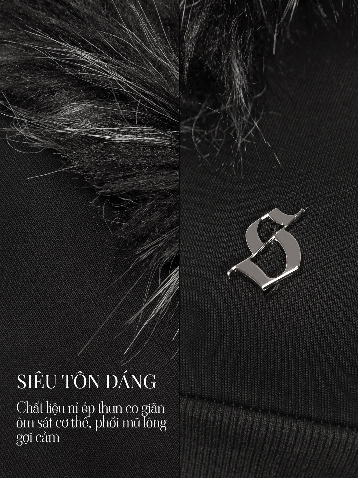SISTERS Áo khoác croptop nỉ mũ lông Vesper - Đen