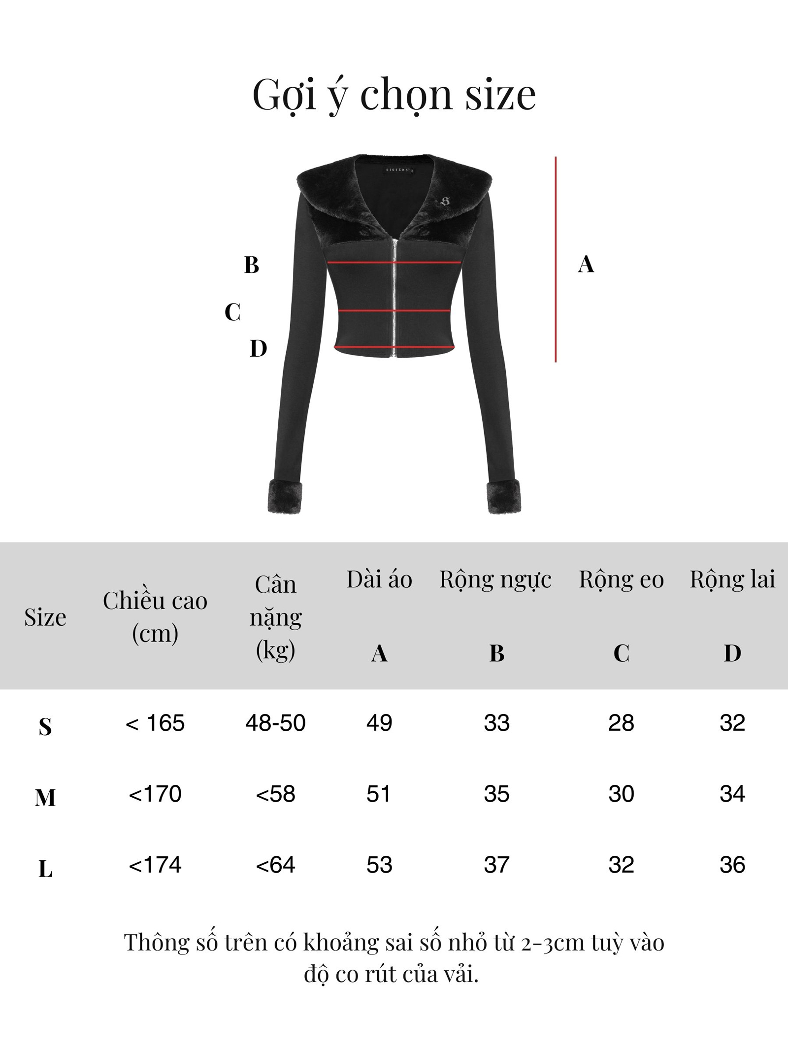 | Size | Ngang ngực | Ngang eo | Ngang lai | Dài áo |