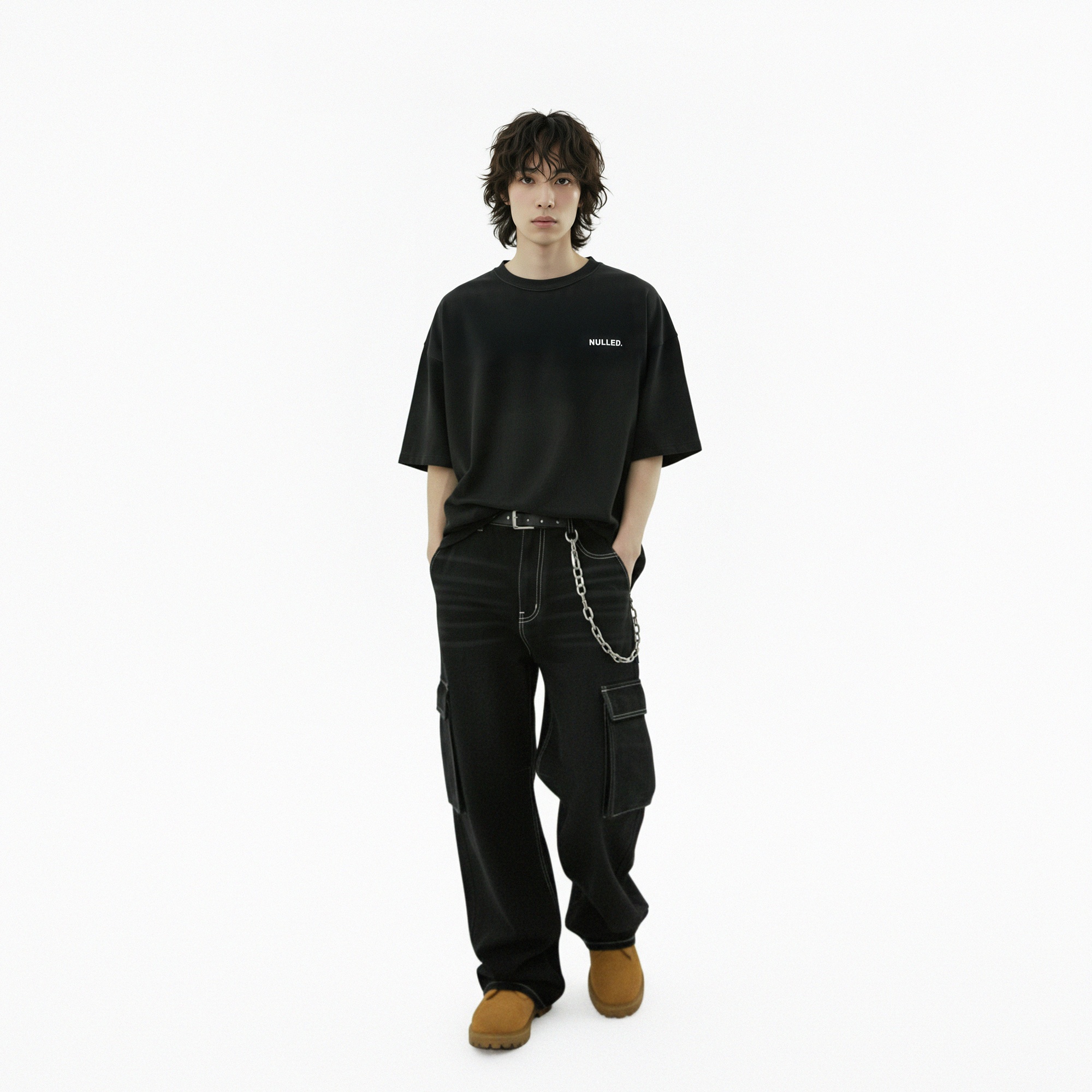 Tông đen trơn kết hợp cùng form boxy hiện đại và chi tiết in chữ NULLED tinh tế giúp item này trở thành lựa chọn linh hoạt – mặc hằng ngày, phối layer hay xây dựng outfit streetwear cá nhân đều phù hợp.