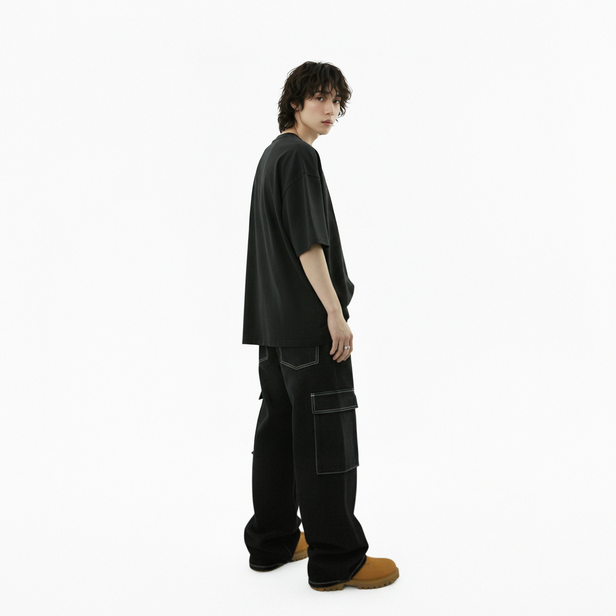 Form boxy giúp chiếc áo phông đen basic vẫn đẹp dù mặc vừa size hay oversized nhẹ.