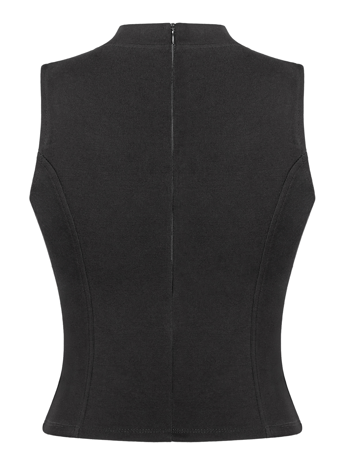 Tôn vinh đường cong tuyệt đối với dáng áo croptop sát nách cổ cao, chiết eo tinh tế, giúp phô diễn sự mềm mại và gợi cảm của vóc dáng.