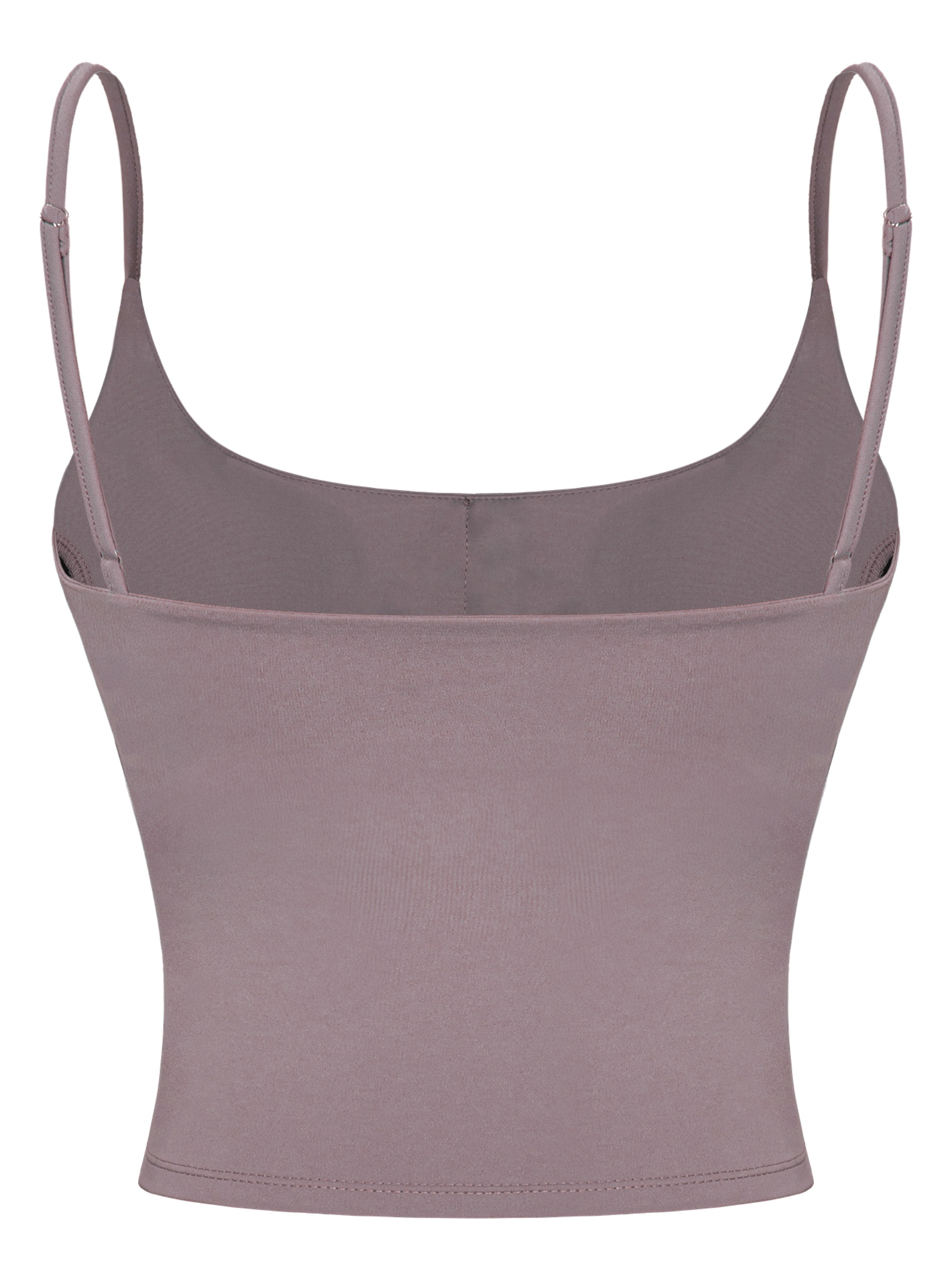 Phần dây áo mảnh có thể điều chỉnh độ dài để vừa vặn hơn với vóc dáng. Mút ngực tích hợp bên trong giúp giữ form ổn định và tăng sự tự tin khi vận động. Logo inox nhỏ được gắn tinh tế phía trước tạo điểm nhấn sáng nổi trên nền nâu, mang lại nét cá tính cho thiết kế.