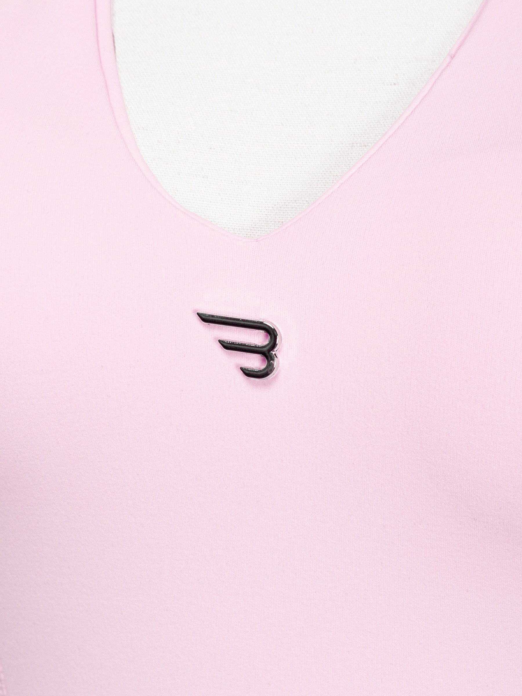Gam màu hồng phấn dịu nhẹ và tinh tế giúp nàng dễ dàng phối hợp với nhiều kiểu chân váy hay quần tập.