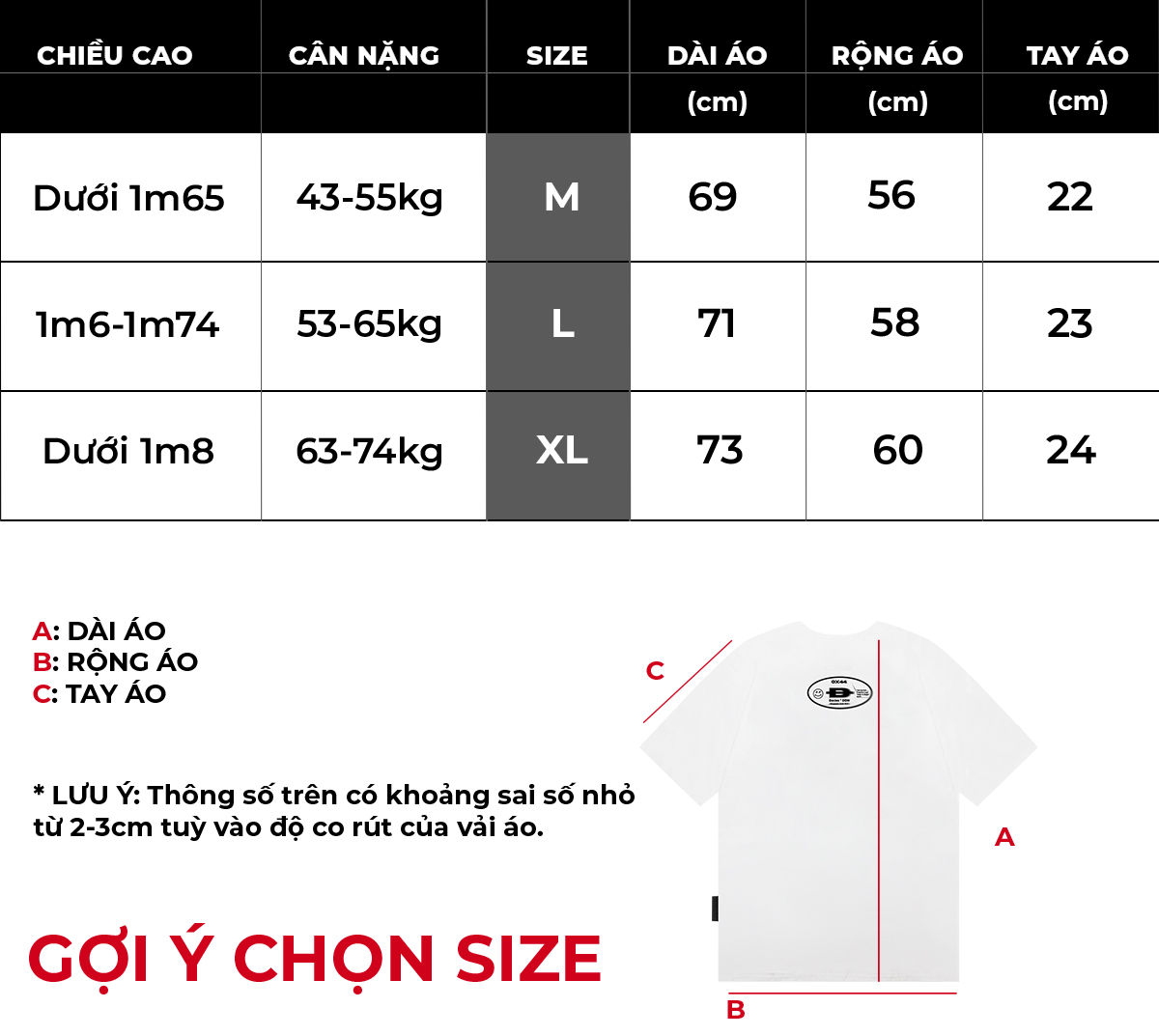 Form áo thun local brand đẹp Tee Shadow với kích thước tiêu chuẩn