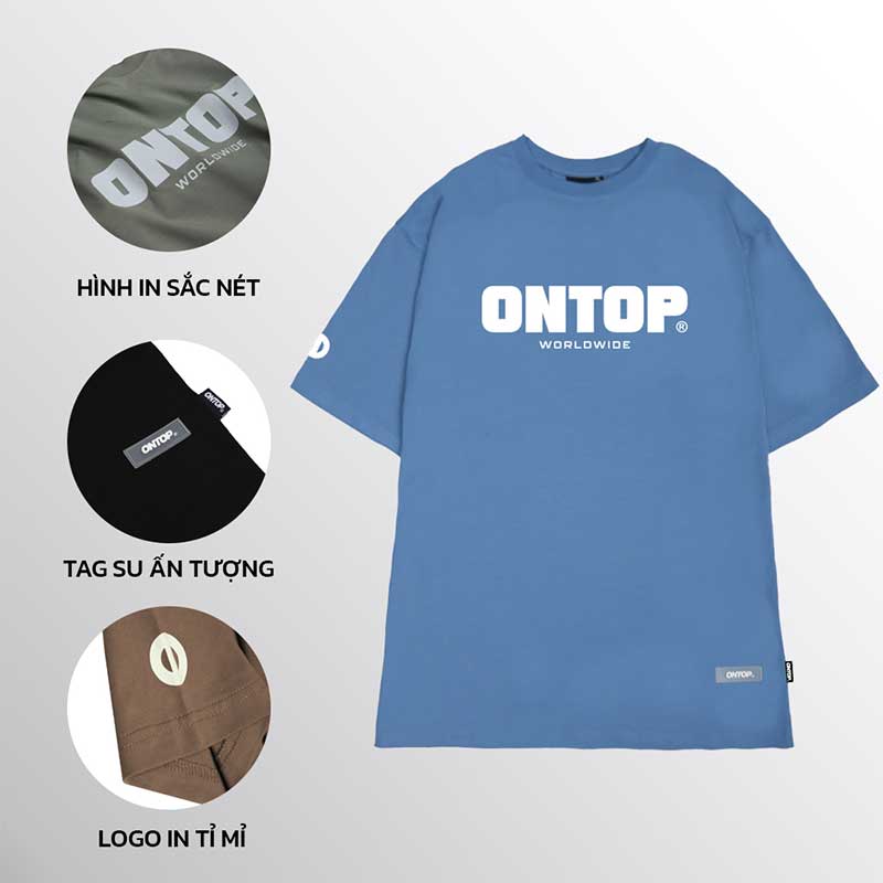 Thiết kế tối giản với điểm nhấn logo ONTOP được in sắc nét nổi bật trên nên nền áo. Chi tiết tag su ở phần lai áo và logo ở phần tay áo giúp nhận diện sản phẩm sản phẩm chính hãng của local brand ONTOP.