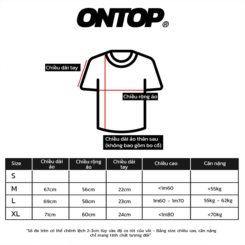 Form áo thun được may theo size tiêu chuẩn riêng của ONTOP vừa vặn và phù hợp cho cả nam và nữ.