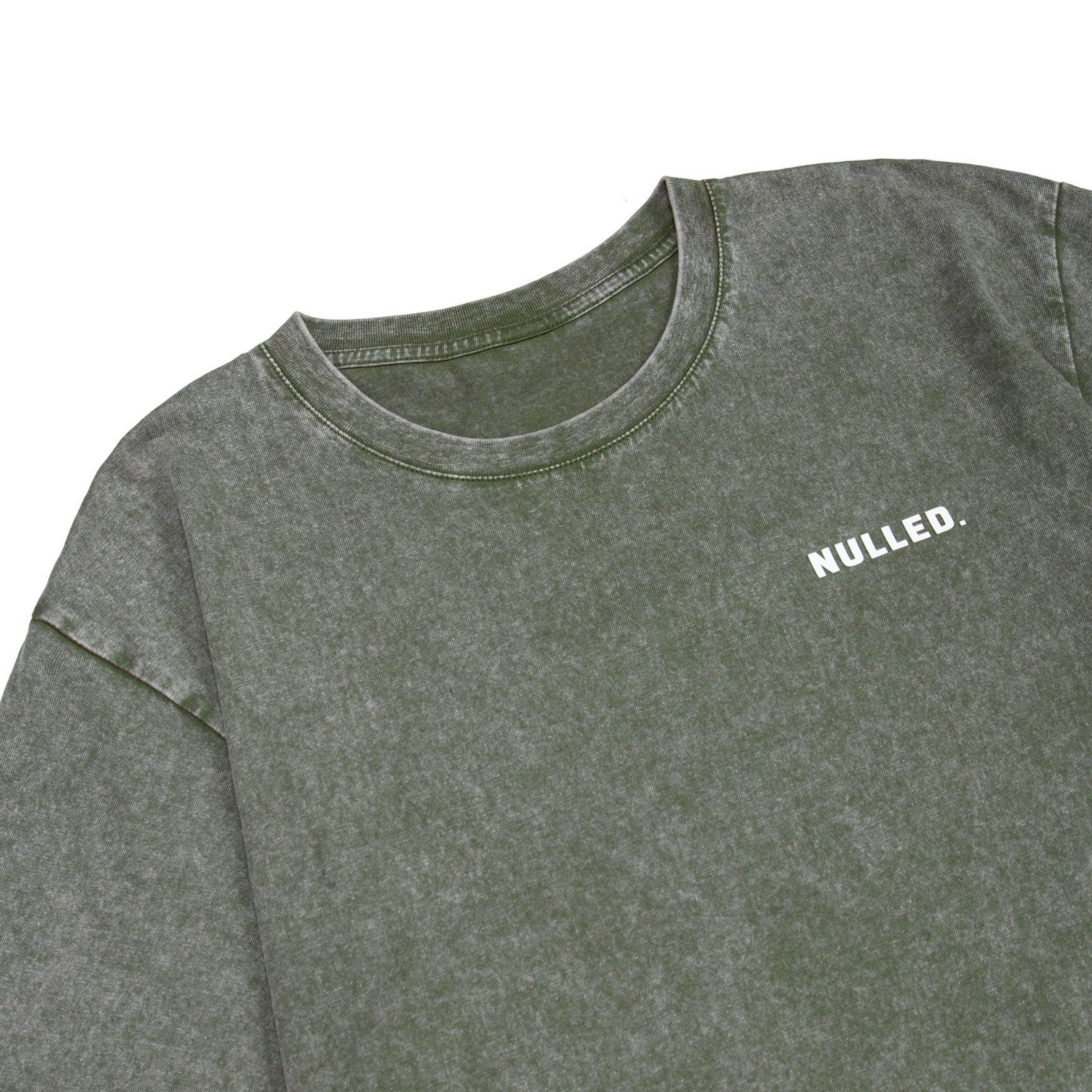 Hãy nâng tầm phong cách cá nhân của bạn với Áo thun nam wash màu xanh rêu NULLED ngay hôm nay.