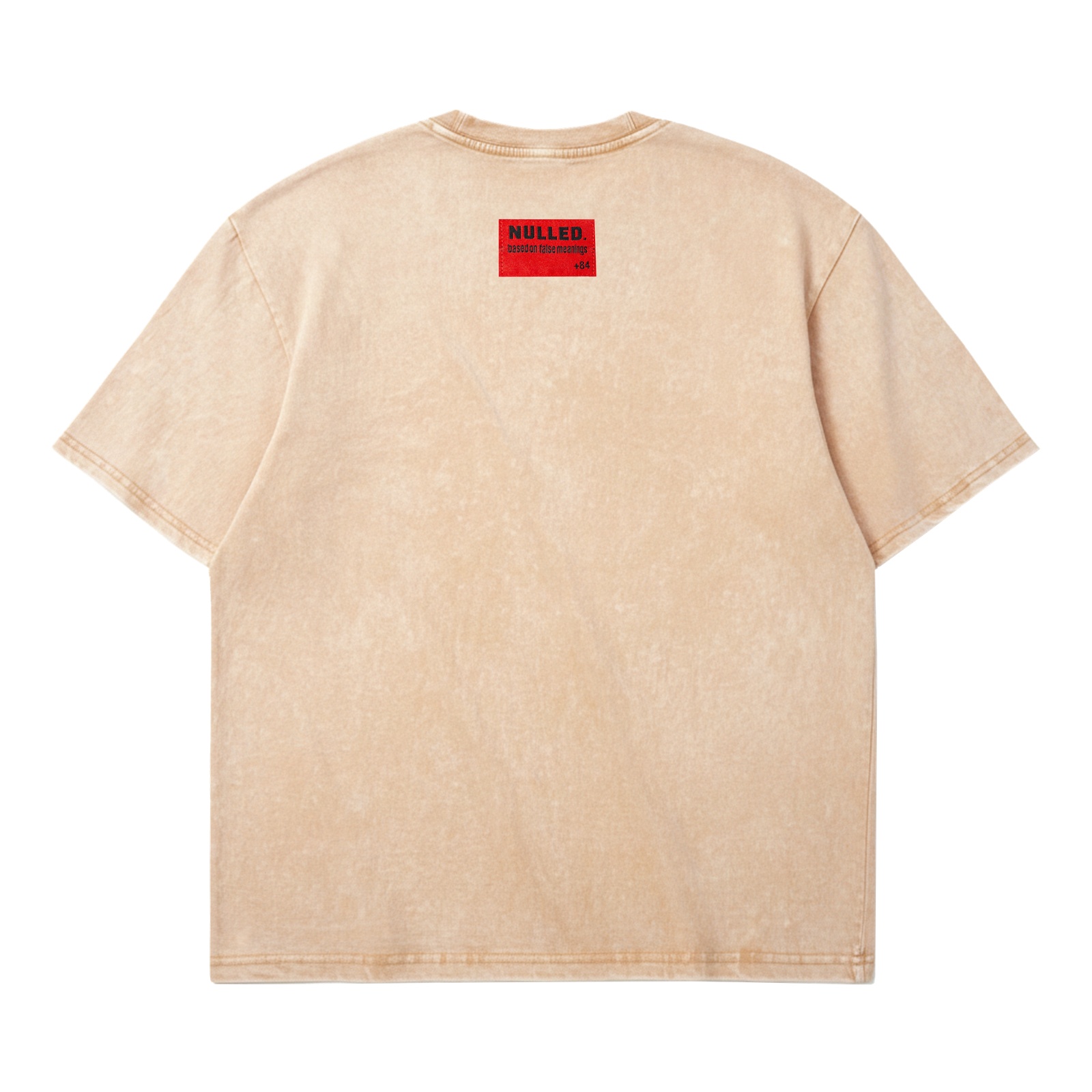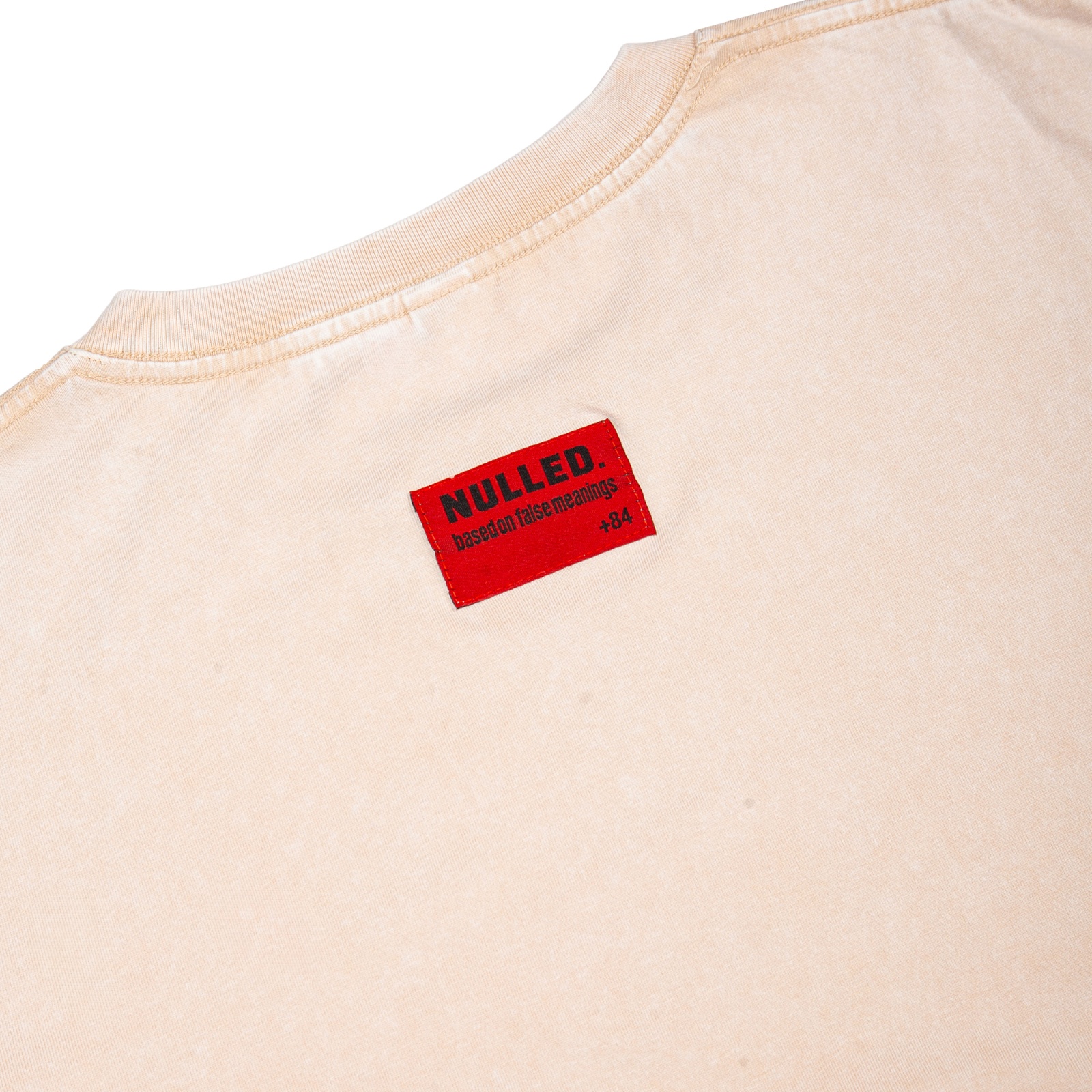Sản phẩm còn gây ấn tượng bởi tag đỏ đặc trưng sau gáy, một chi tiết nhỏ nhưng khẳng định giá trị thương hiệu và sự tỉ mỉ trong từng khâu sản xuất Áo thun nữ wash NULLED - Kem mơ.