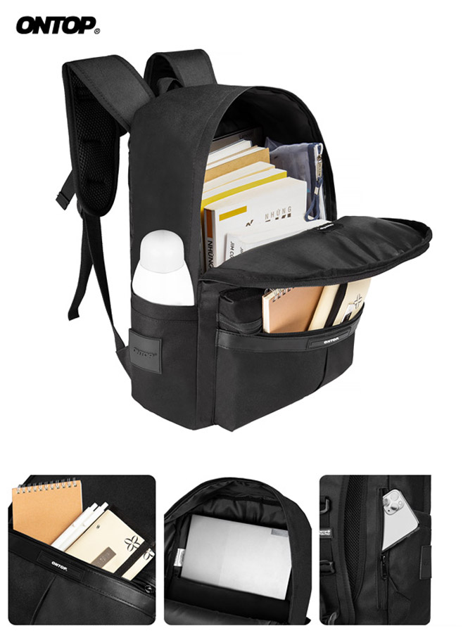 Balo ONTOP có kích thước rộng rãi, phù hợp để đựng sách vở, laptop, quần áo và nhiều vật dụng cá nhân khác.Thiết kế nhiều ngăn khoa học, giúp bạn dễ dàng sắp xếp đồ đạc một cách ngăn nắp và gọn gàng.Ngăn chính rộng rãi, có thể chứa laptop lên đến 14.3 inches cùng nhiều sách vở, tài liệu. Ngăn phụ nhỏ bên ngoài tiện lợi để đựng các vật dụng cá nhân thường xuyên sử dụng như điện thoại, ví tiền, chìa khóa...Hai bên balo có thêm ngăn lưới để đựng bình nước hoặc ô.
