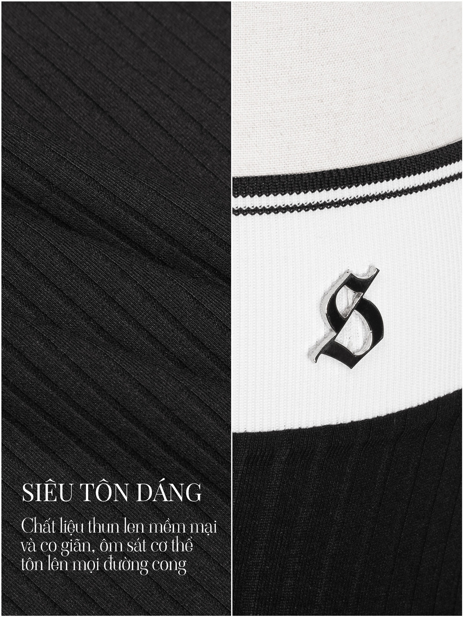 Bản lưng to màu trắng được phối viền đen tinh tế, đính kèm tag inox và logo inox chữ S độc đáo, khẳng định phong cách gợi cảm và tinh tế.