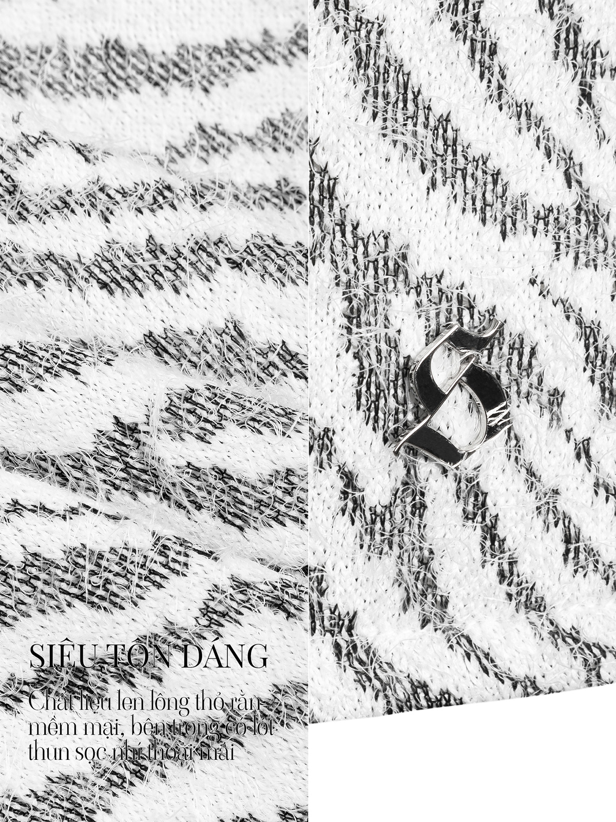 Sắc trắng được điểm tô bằng hoạ tiết rằn màu đen bắt mắt, thu hút mọi ánh nhìn mỗi khi nàng sải bước.