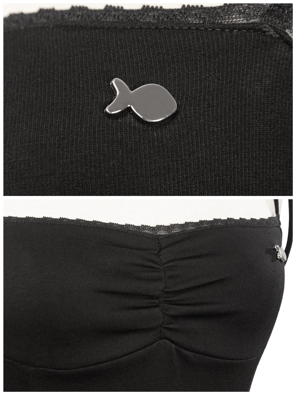 Dù ôm sát cơ thể nhưng chiếc đầm vẫn đảm bảo sự thoải mái nhờ độ co giãn tuyệt vời. Chiếc logo cá inox nhỏ nhắn lấp lánh là biểu tượng cho sự kiêu kỳ của nhà DKMV.