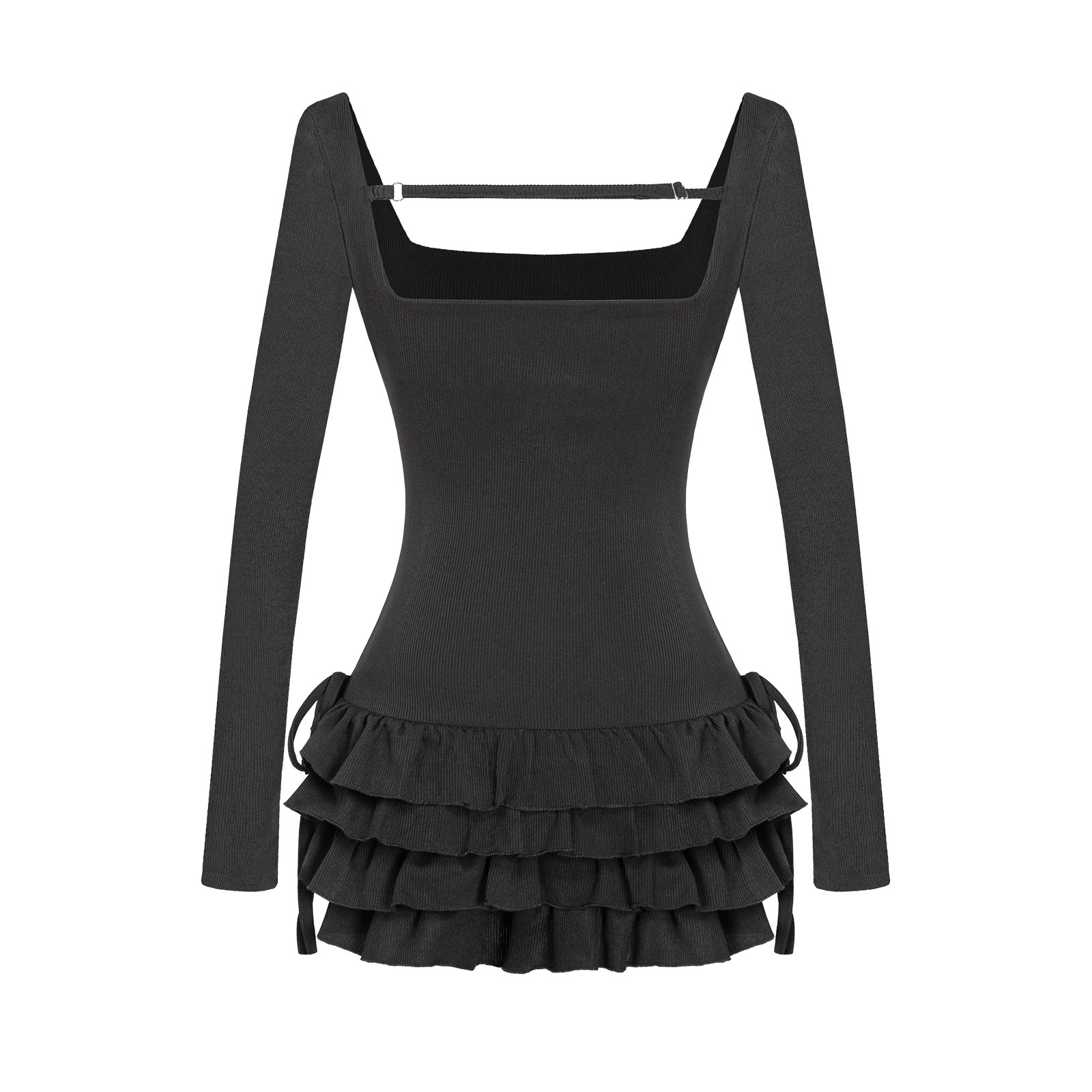 Đầm được may từ chất liệu thun gân mềm mại, có độ co giãn nhẹ, tạo cảm giác thoải mái và tôn dáng một cách tinh tế. Đầm không bao gồm quần bảo hộ bên trong.