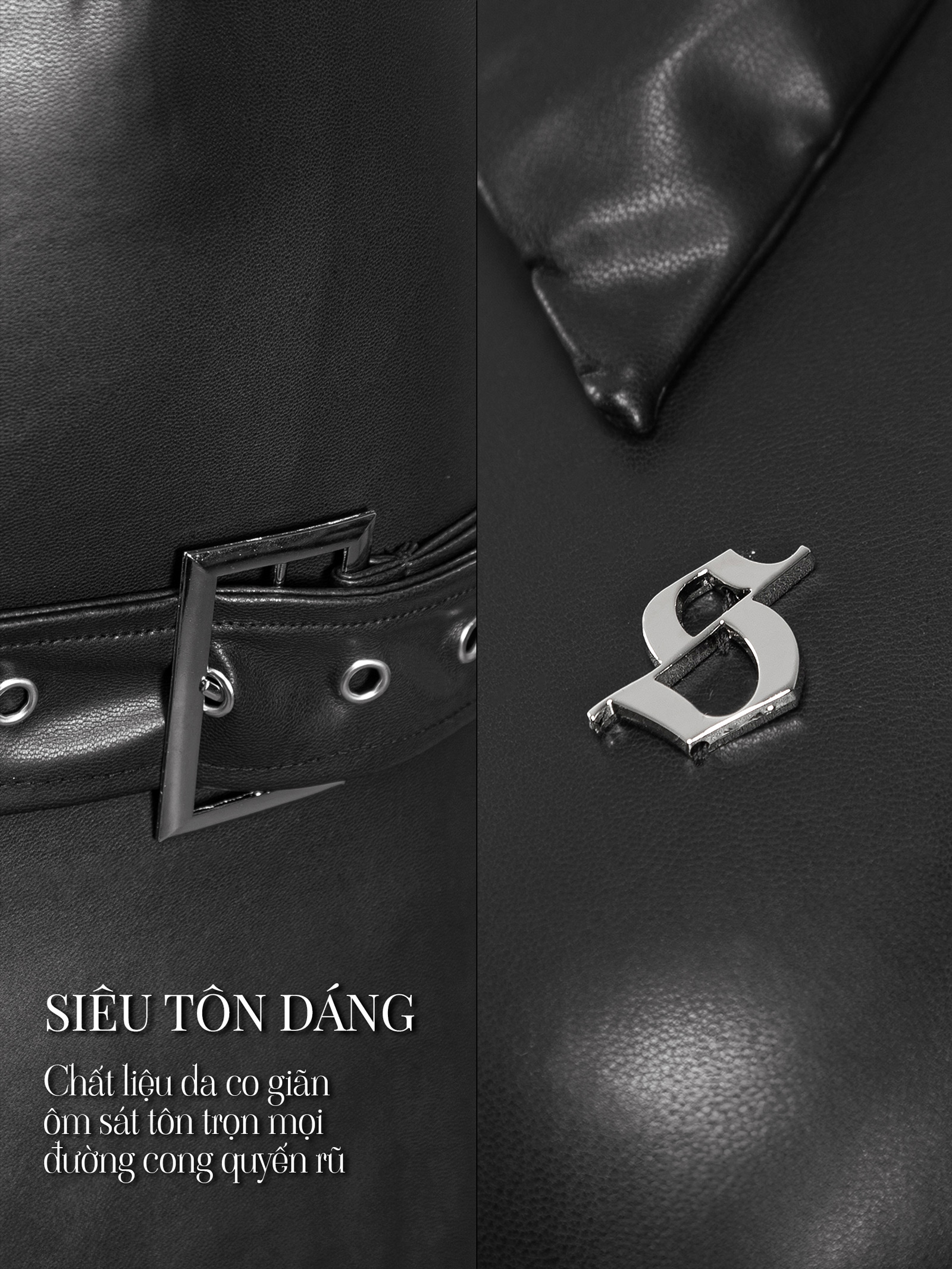 Chất liệu da co giãn vượt trội, ôm sát tuyệt đối cơ thể, tạo cảm giác hòa quyện vào làn da, giúp tôn lên trọn vẹn đường cong eo thon và vòng ba gợi cảm.