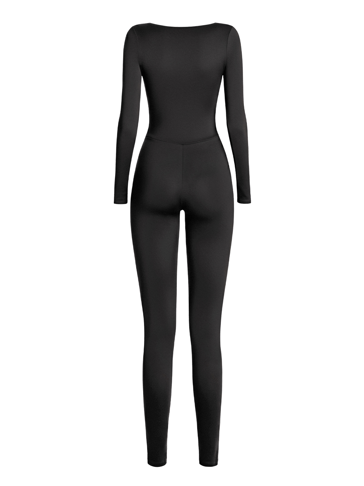 Thiết kế cổ vuông dài tay kết hợp form jumpsuit ôm sát mang đến hiệu ứng dáng thon gọn và gợi cảm.