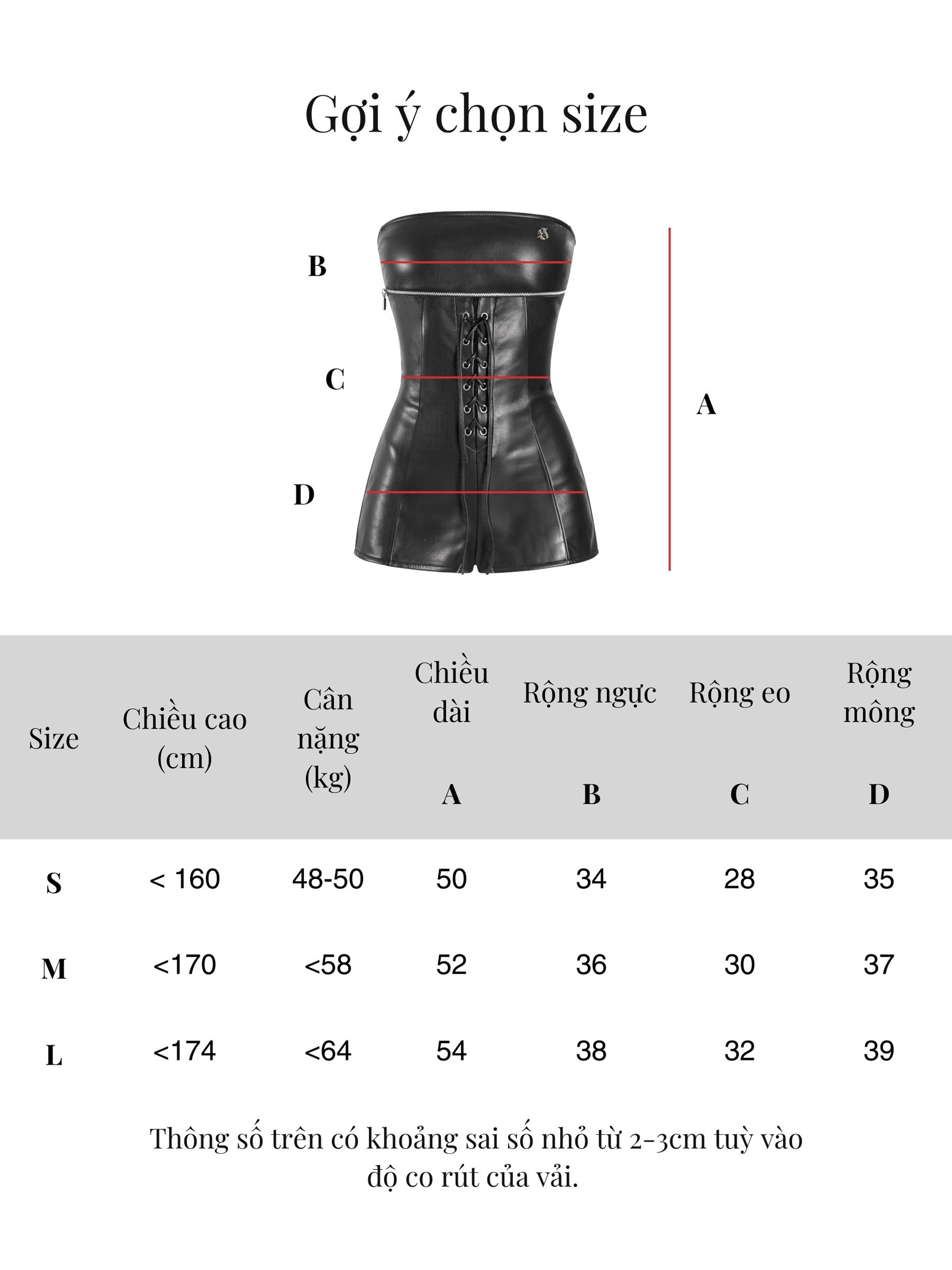 | Size | Ngang ngực | Ngang eo | Ngang mông | Chiều dài |