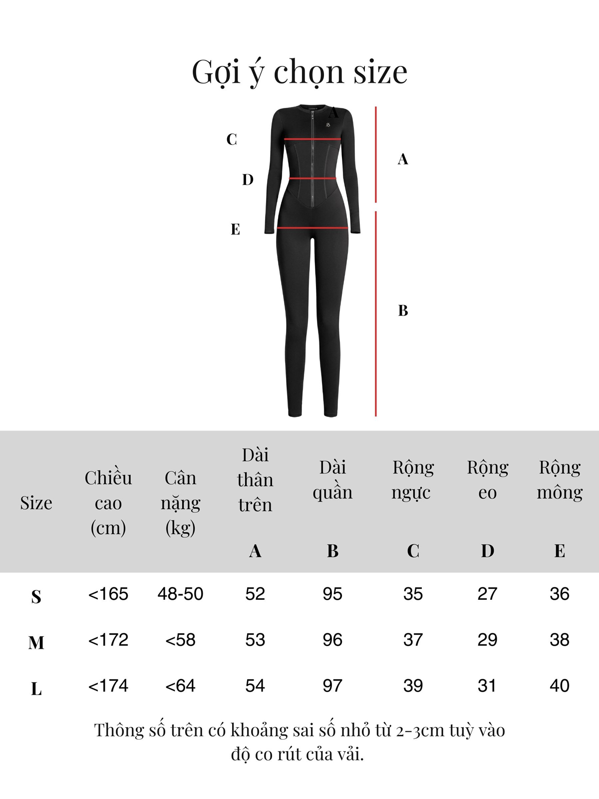 | Size | Dài thân trên | Dài quần | Ngang ngực | Ngang eo | Ngang mông |