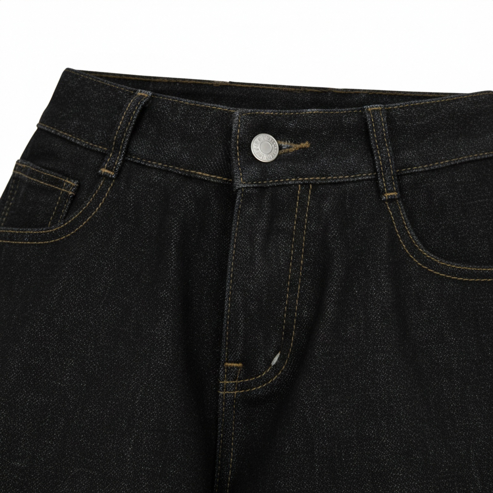 Quần được làm từ chất liệu denim bền chắc, giúp giữ form tốt và mang lại vẻ ngoài mạnh mẽ đặc trưng. Màu đen basic dễ dàng phối với nhiều item streetwear như áo tank top, áo thun oversized hoặc hoodie.