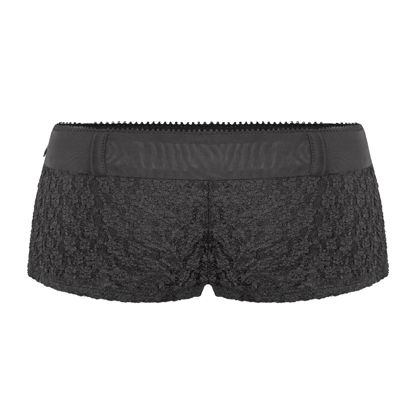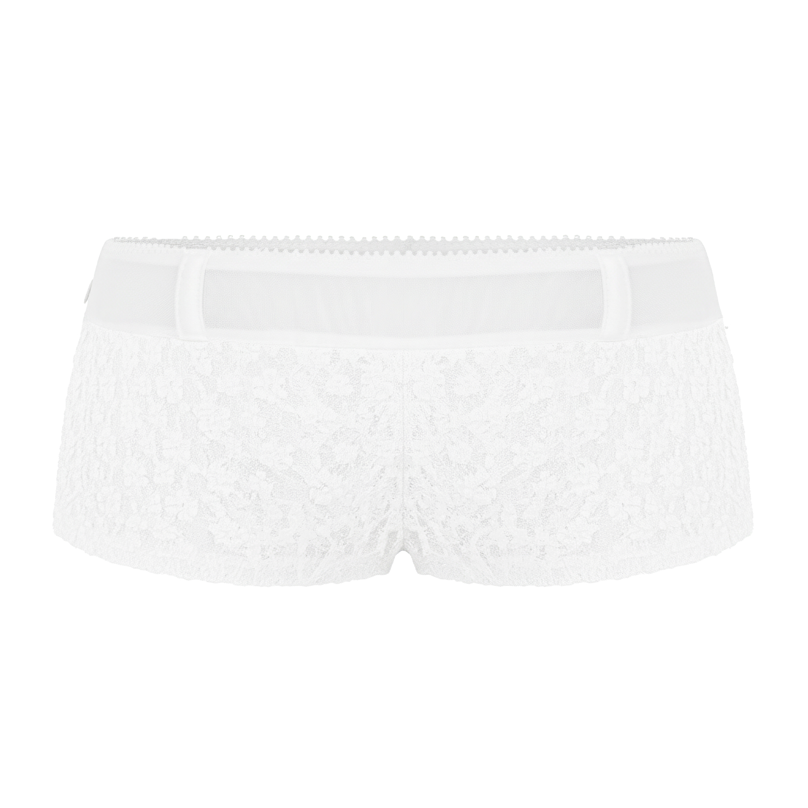Quần nổi bật với lớp ngoài bằng thun ren hoa cúc mềm mại, tạo nên vẻ ngoài nữ tính và ngọt ngào. Lớp lót trong bằng thun sọc nhí co giãn êm ái, đảm bảo sự thoải mái và kín đáo.