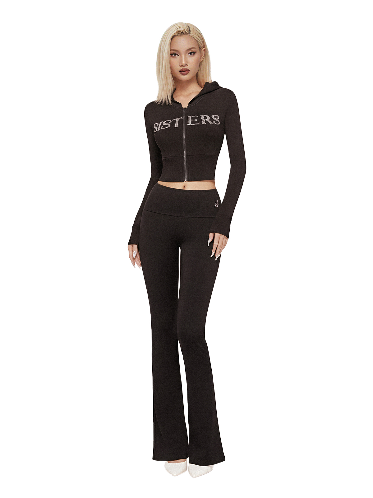 Điểm nhấn lấp lánh từ chữ SISTERS đính đá, logo kim loại nhỏ tinh xảo được đính ở cạp quần là dấu hiệu nhận biết các thiết kế của SISTERS. Kết hợp với khóa kéo zip tiện lợi, set đồ không chỉ đẹp mà còn tối ưu hóa tính ứng dụng trong mọi hoàn cảnh.
