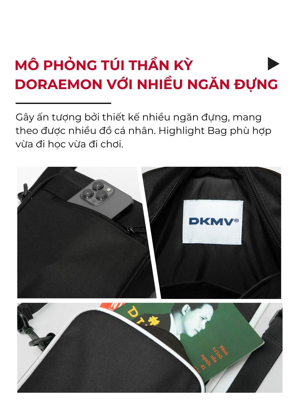 Tag su logo DKMV đặc trưng ở mặt trước túi đeo chéo nhà DKMV.
