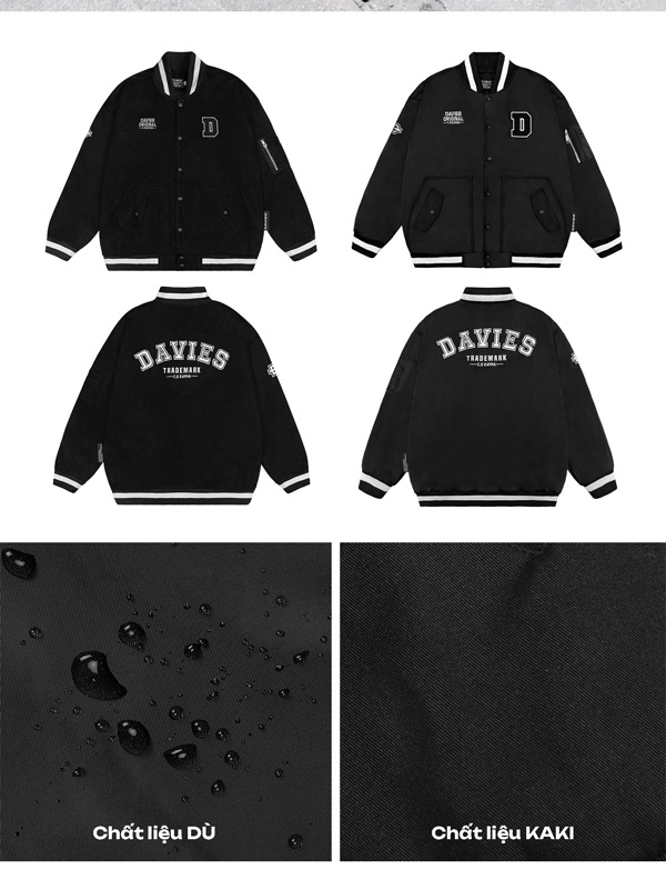 Áo khoác bomber local brand DAVIES sở hữu độ bền cao.