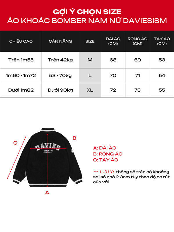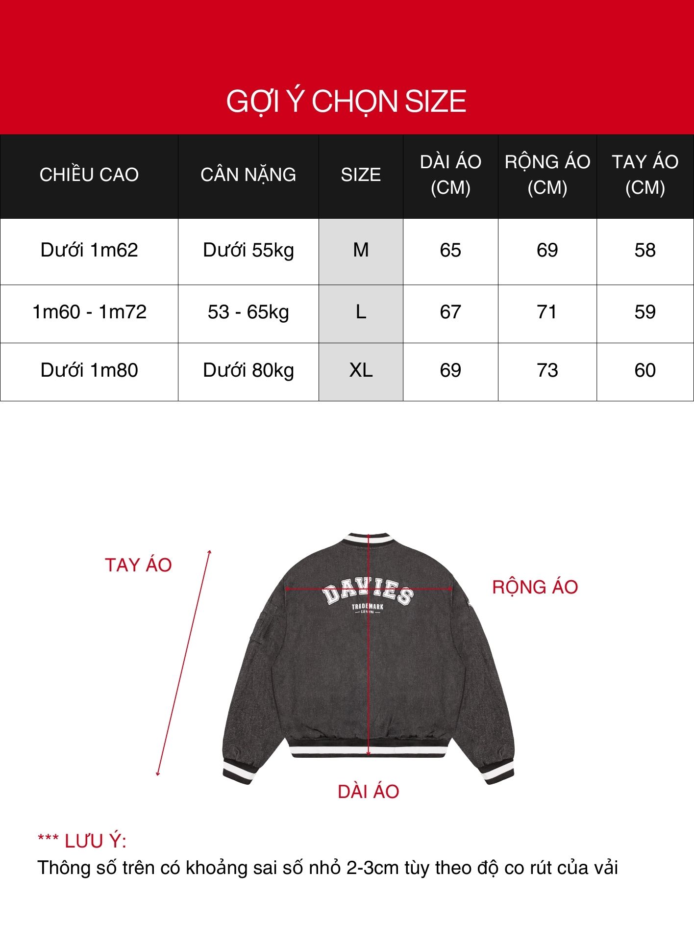 Thông tin size ( kích cỡ ) áo khoác bomber nam nữ Bomber Khaki Daviesism