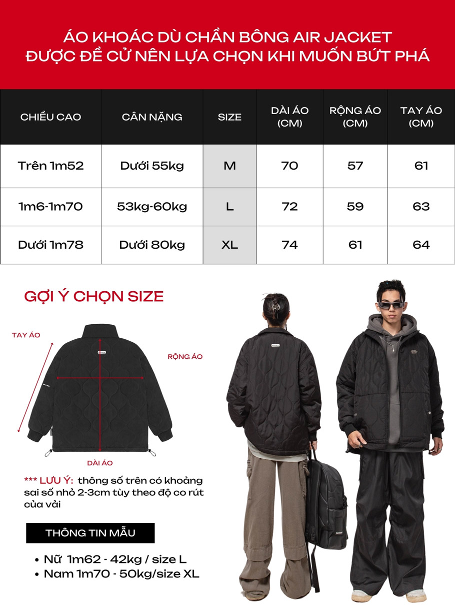 Thông tin size ( kích cỡ ) áo khoác local brand đẹp Air Short Down Jacket