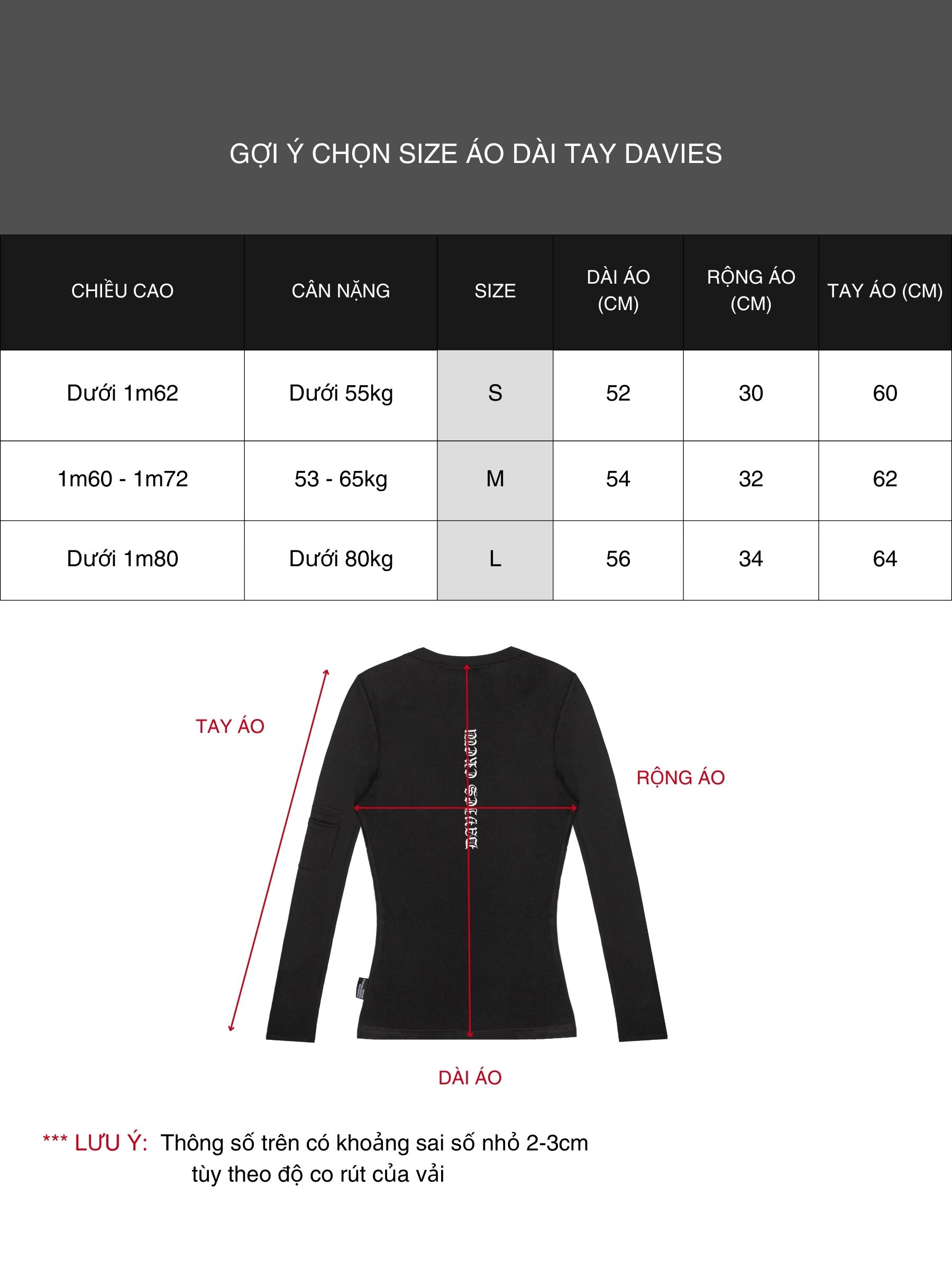 Là một trong những cái tên đặt nền móng cho streetwear Việt, Davies không chỉ bán quần áo, họ bán cái gắt của sự sáng tạo và bản sắc cá nhân. Chiếc Grave Top chính là món đồ giúp bạn chiếm trọn spotlight, khẳng định diện mạo đầy quyền lực mỗi khi xuất hiện trên phố. Grave Top không mang dáng vẻ ngọt ngào thường thấy ở áo ôm body. Thiết kế này được sinh ra cho những cô gái yêu phong cách streetwear nhưng vẫn muốn giữ lại nét quyến rũ rất riêng.