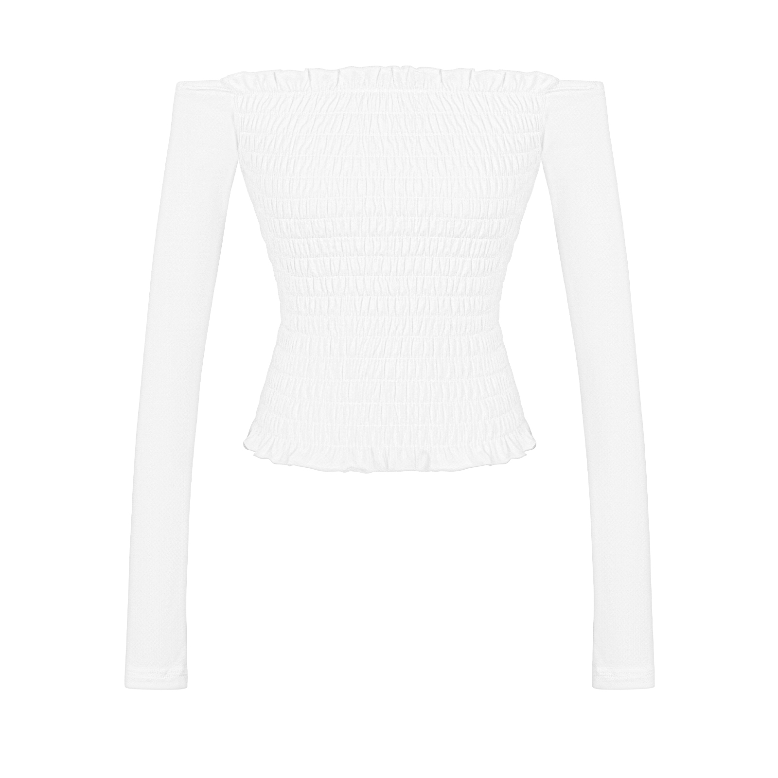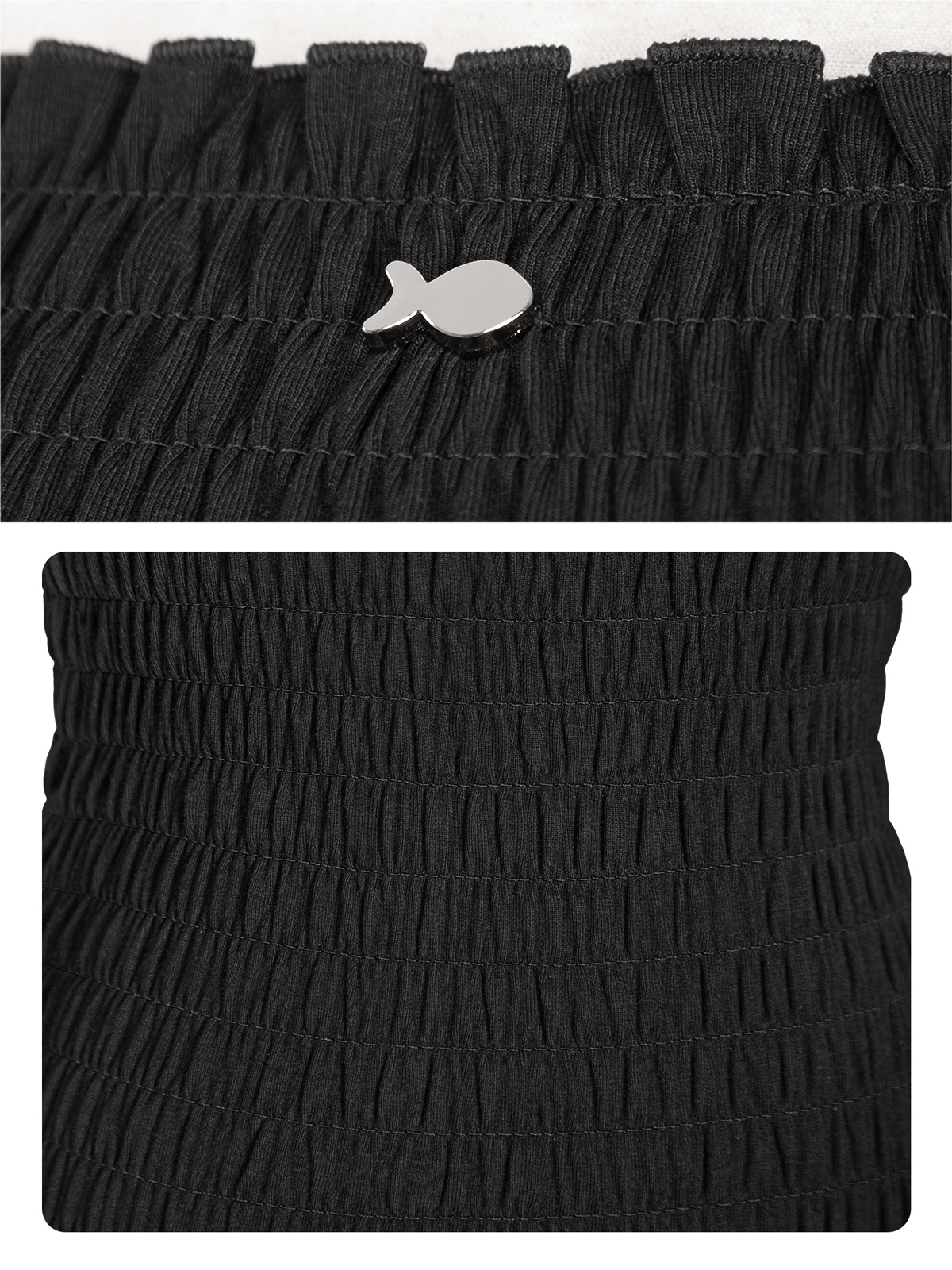 Nét điệu đà được nhấn mạnh qua chi tiết nhún thân đáng yêu, tạo nên đường nét mềm mại và sự xinh yêu cho vóc dáng. Chi tiết này giúp chiếc áo ôm sát nhưng vẫn vô cùng kiêu kỳ.