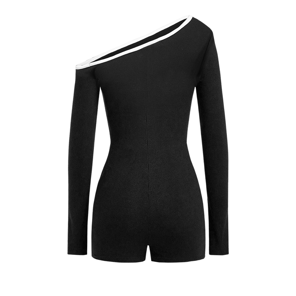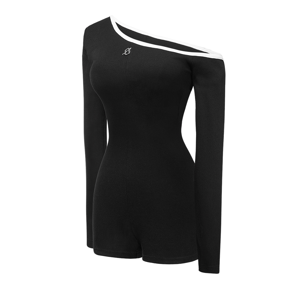 Thiết kế lệch vai đầy ấn tượng cùng viền trắng tinh tế chạy ngang vòng ngực, khoe trọn bờ vai thon thả và xương quai xanh gợi cảm,